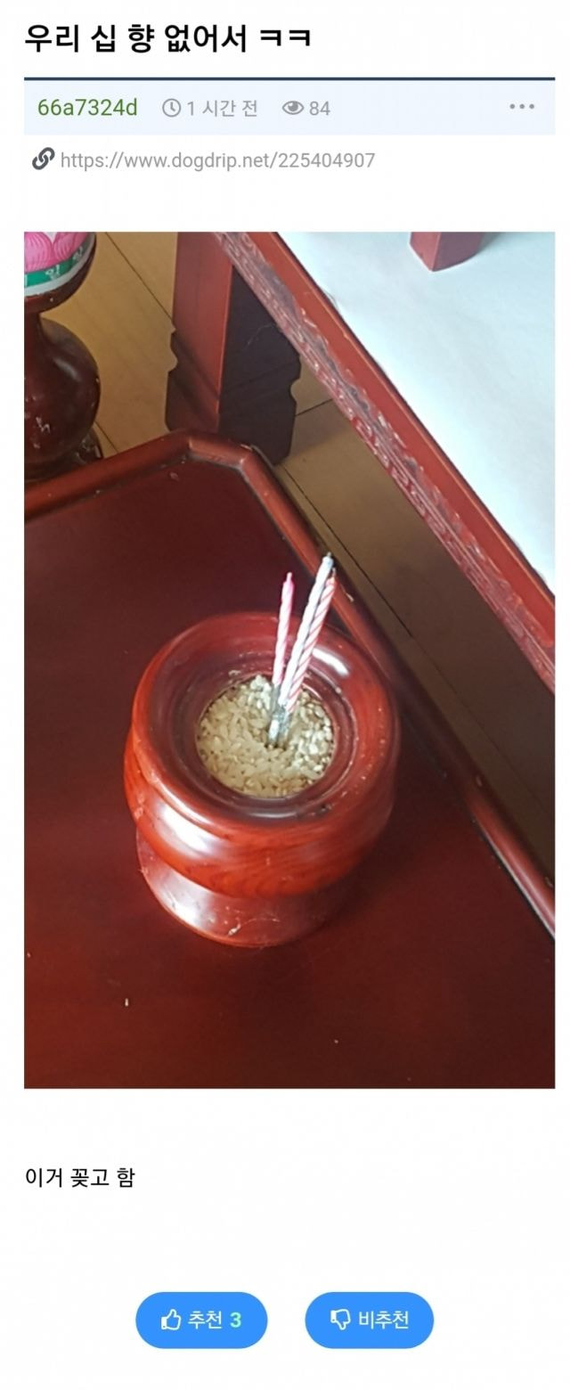 »ýÀü¿¡ ¿¬ÃÊÇϼ̴ø ºÐÀ̸é Çâ´ë½Å¿¡ ´ã¹è ¿Ã¸®±ä ÇÔ ±Ùµ¥ Áý¾È¿¡ (°øÀεÊ)Èí¿¬ÀÚ°¡ ³ª Çϳª»ÓÀ̶ó Àϰ¡Ä£Ã´ ¾Õ¿¡¼ ºÒºÙÀ̶ó°í ÇÏ¸é µµ¸Á°¡°í½Í±ä ÇÏ´õ¶ó