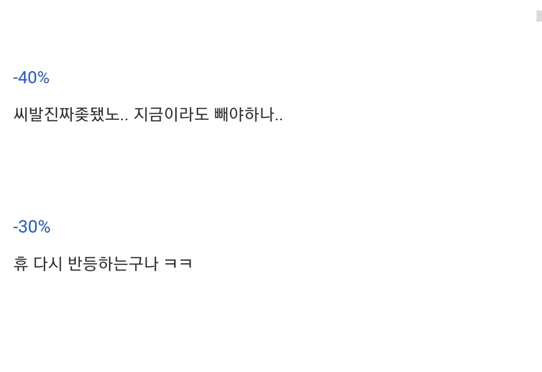 ±ÝÀ¸·Î ÀÚ»êÀÌ ¸ô¸®±â±îÁö ÇÒ Á¤µµ¸é ÀÌÁ¨ Á¤¸» ºÒ¾ÈÇѰ¡º½ »ç¶÷µéÀÌ... ½Ã°£Áö³ª¸é ¿Ã¶ó ¾à¹ßÀÌ ¶³¾îÁ³À¸