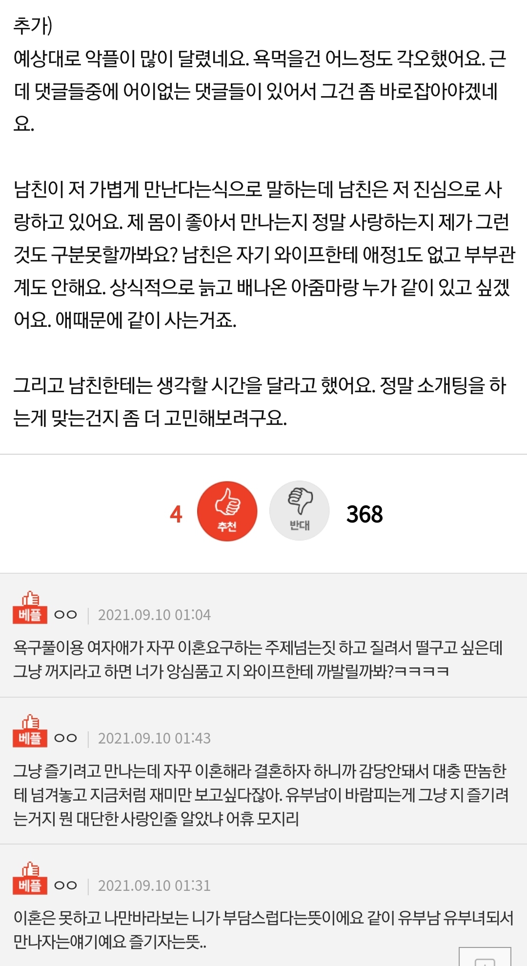 º£Çø»ÀÌ ¸Â´Âµí. ÀÌÈ¥ÇÏ°í »õ°áÈ¥Çϰí½ÍÁø¾Ê°í ¤µ.¤µ¸¸ Çϰí½ÍÀºµ¥ ÀÚ²Ù ÀÌÈ¥¾ðÁ¦ÇÏ³Ä ÀçÃËÇϴϱî À§±â°¨µµ µé°í ÂôÂô´ë´Â°Å Â¥Áõ³ª´Ï µÐÇÑ ÈÄ¹è ¼Ò°³½ÃÄÑÁ༠°áÈ¥Àº µý³²ÀÚÇÑÅ× ¶°³Ñ±â°í Áö´Â Áñ±æ°Å¸¸ Áñ±â°í½ÍÀº°ÅÁö ¼·Î À¯ºÎ´Ï±î Æø·Î À§Çèµµ »ç¶óÁö°í