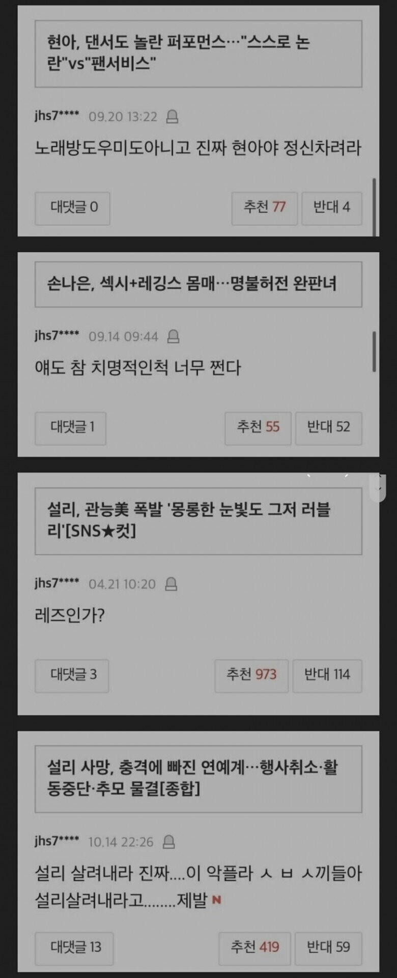 ¼ÖÁ÷È÷ ¿ì¸®µµ ÀÌ·± °Å º¸°í ¸¶³É ¿ôÀ» ¼ö´Â ¾øÀݾÆ... ¸»Àº ÇÑ ¹ø ¹ñÀ¸¸é ´Ù½Ã ¸ø µ¹¸®´Âµ¥, ´ñ±ÛÀº ÃæºÐÈ÷ °¡´ÉÇÔ. ´ñ±Û ¾²°í ÀÛ¼º¿Ï·á ´©¸£±â Àü¿¡ ÇÑ ¹ø¸¸ ´õ »ý°¢Çغ¸Àð ´Ùµé