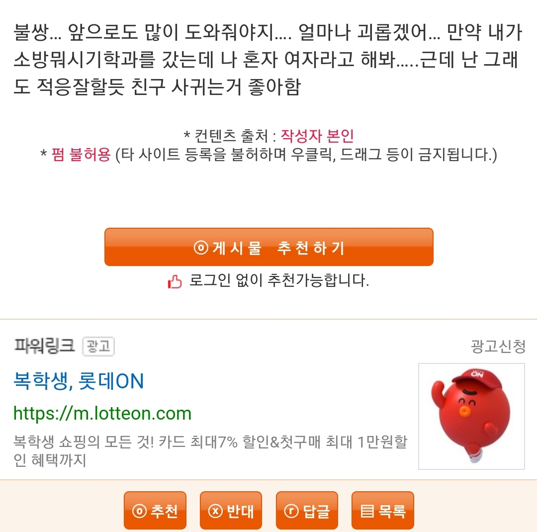 ºÒ½Ö¡¦ ¾ÕÀ¸·Îµµ ¸¹ÀÌ µµ¿ÍÁà¾ßÁö¡¦. ¾ó¸¶³ª ±«·Ó°Ú¾î¡¦ ¸¸¾à ³»°¡ ¼Ò¹æ¹¹½Ã±âÇаú¸¦ °¬´Âµ¥ ³ª È¥ÀÚ ¿©ÀÚ¶ó°í ÇØºÁ¡¦..±Ùµ¥ ³ ±×·¡µµ ÀûÀÀÀßÇÒµí Ä£±¸ »ç±Í´Â°Å ÁÁ¾ÆÇÔ