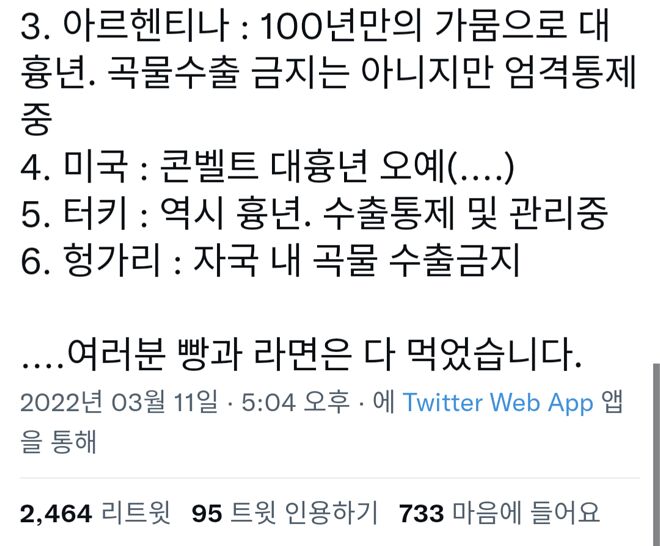°Å±â¿¡´Ù Áß±¹µµ Çʿ䷮ÀÇ 50%¸¦ ¼öÀÔ¿¡ ÀÇÁ¸ Áß. ±×·¡¼ ¸¸¾à¿¡ ÇÊ¿äÇÑ ºñ·á¸¦ ¼ö±ÞÇÏÁö ¸øÇϰí, ÀÌ»ó ±âÈıîÁö °ãÃļ Áß±¹¿¡¼ ½Ä·®³ÀÌ¶óµµ ³´Ù¸é... Àú³ðµéÀÌ Á¤±Ç ¾ÈÁ¤À» À§ÇØ ¹«½¼ ÁþÀ» ÇÒÁö µÎ·Á¿ò...