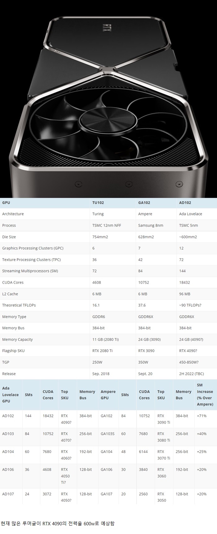 ÇöÀç ÁöÆ÷½º ½Ã¸®ÁîÀÇ Àü·Â ¼Ò¸ð »ó½ÂÀº ±×·¡ÇÈ Äھ ¾Æ´Ï¶ó ¸Þ¸ð¸®ÀÇ Àü·Â¼Ò¸ð Áõ°¡°¡ Áö³ªÄ¡°Ô ´Ã¾î³ª¼ ¹ú¾îÁø ¹®Á¦°¡ Á» ´õ Ä¿¿ä. ¿¹½Ã·Î½á 3090°ú µ¿±Þ ĨÀÌ µé¾î°¡±â·Î Çß´ø RTX A½Ã¸®Áî´Â ¸Þ¸ð¸®¸¸ gddr6 ³ë¸ÖÀε¥, ¾êµéÀÌ ´ë·« 100W°¡·® ÁöÆ÷½ºº¸´Ù Àü±â¸¦ ´ú ½á¿ä. 40 ½Ã¸®Áîµµ gddr6x·Î ¿¹Á¤µÇ¾î Àü·Â ¼Ò¸ð°¡ ±ÞµîÇÒ°Å´Ù ¶ó´Â ·ç¸ÓÀε¥, ÇØ´ç ĨÀ» »ÌÀ» ¸¶ÀÌÅ©·Ð °øÁ¤ÀÌ ÇöÀ纸´Ù °³¼±µÇ¸é 3090º¸´Ù Àü±â¸¦ ´õ ¾²Áø ¾ÊÀ» °¡´É¼ºÀÌ Á» »ý±é´Ï´Ù.