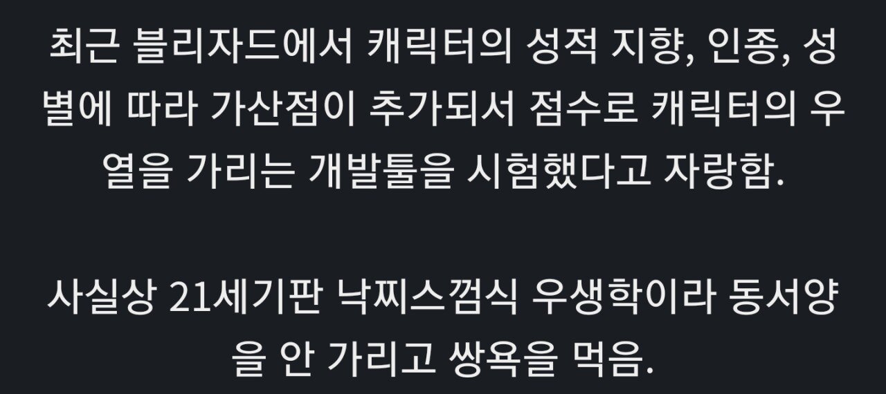 ´Ù¾ç¼º¿¡ Á¡¼ö¸¦ ¸Å±â°Ú´Ù´Â°ÍºÎÅͰ¡ Á¸@³ª°Ô ÀÎÁ¾Â÷º°ÁÖÀÇÀûÀΰŠ¾Æ´Ô? ¹«½¼ ±âÁØÀ¸·Î ¸Å±æ°Çµ¥ ¤»¤»¤»¤» ¹éÀγ²¼ºÄɸ¯ÅÍ´Â 1Á¡ÁÖ°í ÈæÀÎ, ¾Æ½Ã¾ÆÀÎ Äɸ¯ÅÍ´Â 10Á¡ ÁÙ°ÅÀÓ? ÀÎÁ¾, ¼ºº°, ¼ºÁ¤Ã¼¼º µîµî¿¡ Á¡¼ö¸¦ ¸Å°Ü ºÐ·ùÇÏ°Ú´Ù´Â°Ô Á¸³» ¼Ò¸§µ¸´Â ¹ß»óÀÌ´Ù. ³ªÄ¡¶û ´Ù¸¦°Ô ¹¹³Ä
