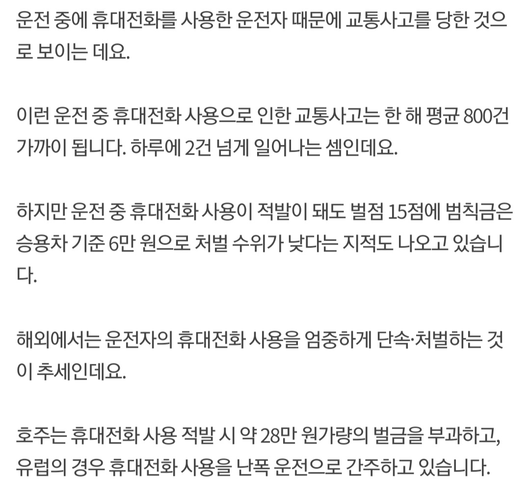 ±³Åë»ç°í ´çÇÑ ½ÅÁö, "¿îÀü Áß ÈÞ´ëÆù »ç¿ëÇÏÁö ¸¿½Ã´Ù"