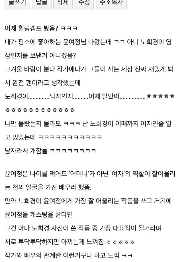 tv¿¡¼­ ³ëÈñ°æ ÀÛ°¡¸¦ º¸°í ´ëÈ¥¶õ¿¡ ºüÁ³´ø ³×ƼÁðµé.jpg [19]