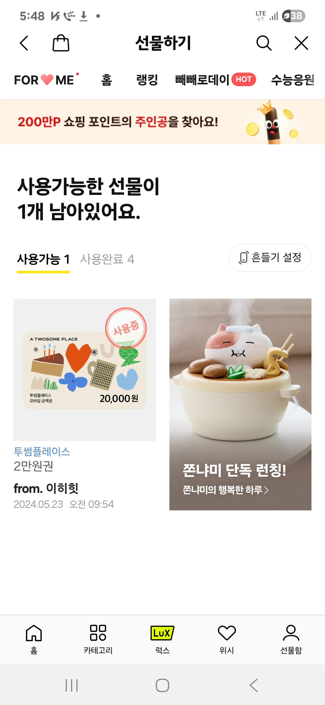 1³âÀü ½º°Ô À̺¥Æ® ¹¹ ¹ÞÀº ÄíÆùÀÌ Àմµ¥? [0]