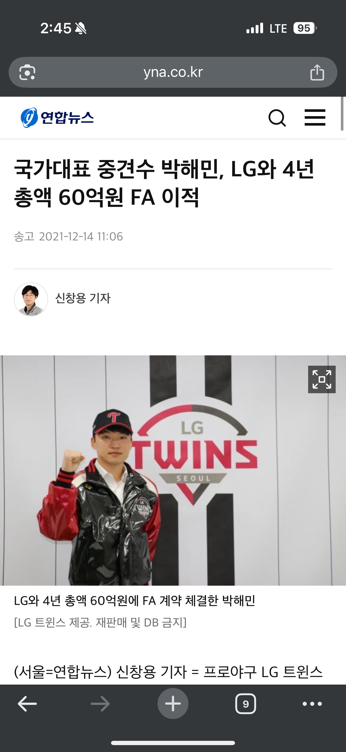 ¹ÚÇØ¹Î, 4³â 60¾ï¿¡ LG¿Í °è¾à ü°á.gisa
