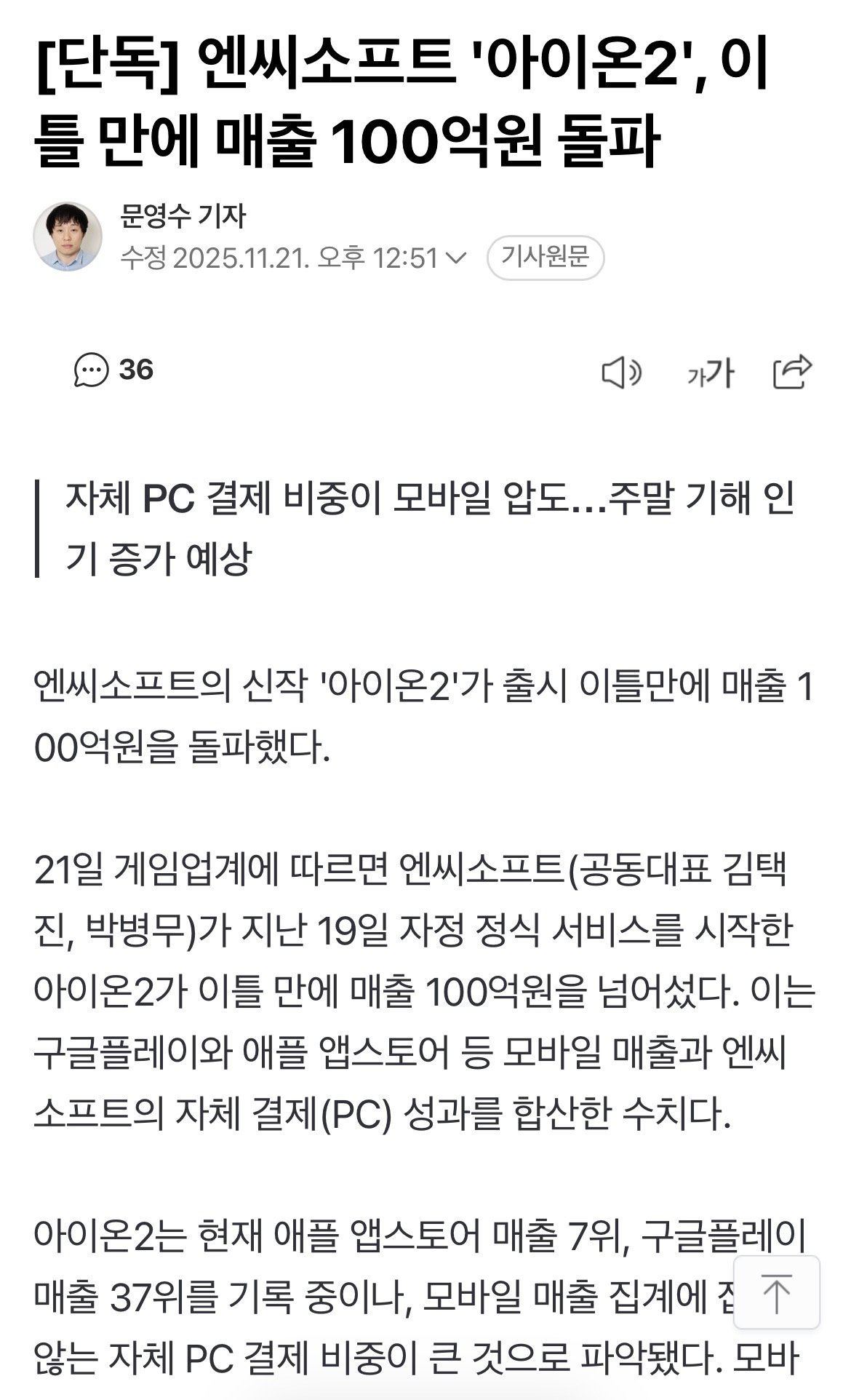 °³Â¾´Ù´Â ¾ÆÀÌ¿Â2 ¸ÅÃâ ±ÙȲ
