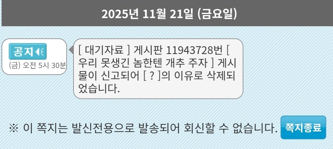 [¿î¿µÀÚ °¨´Ù»ì]ÀÇ ÀÌÀ¯·Î »èÁ¦µÇ¾ú½À´Ï´Ù.