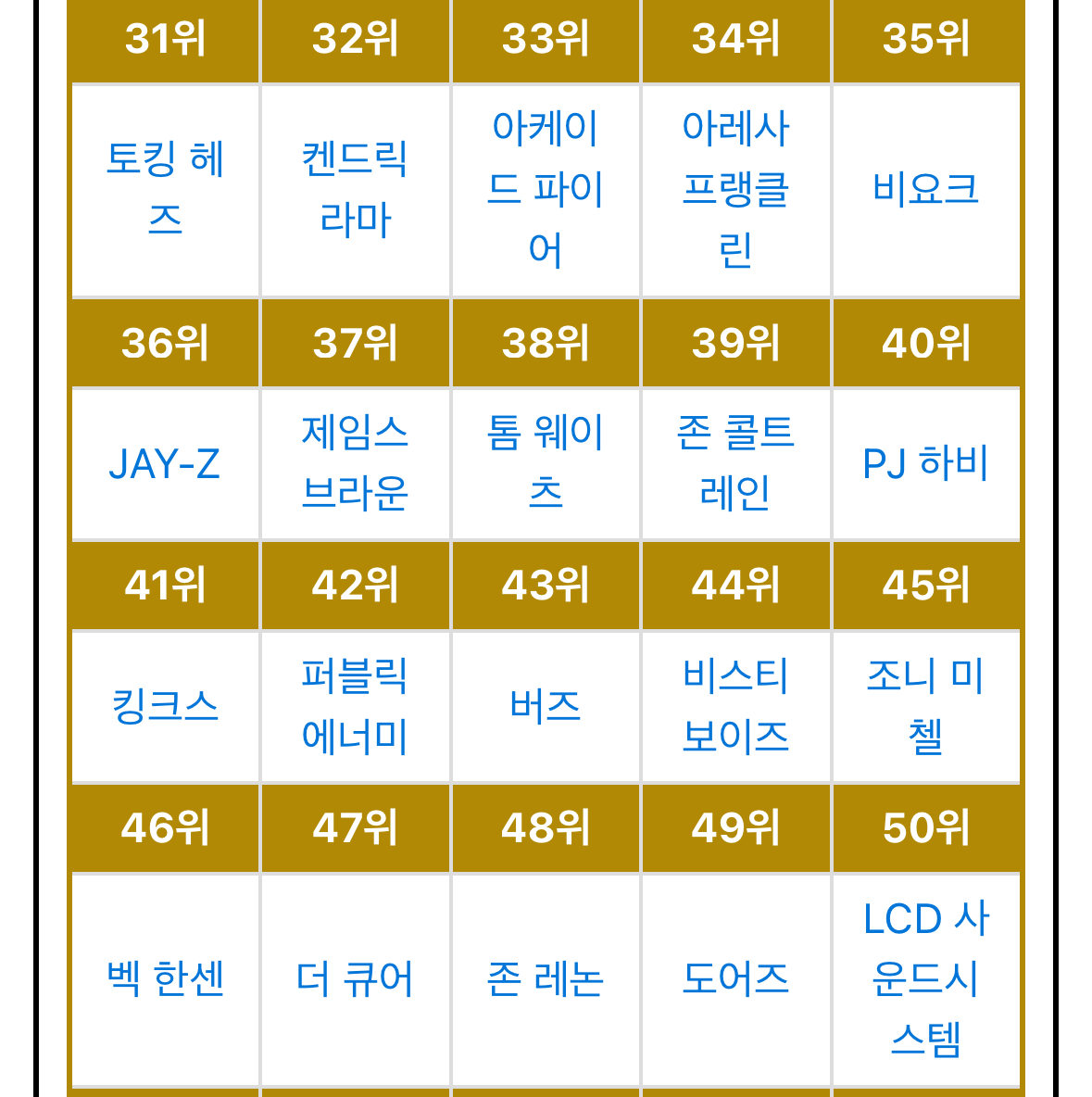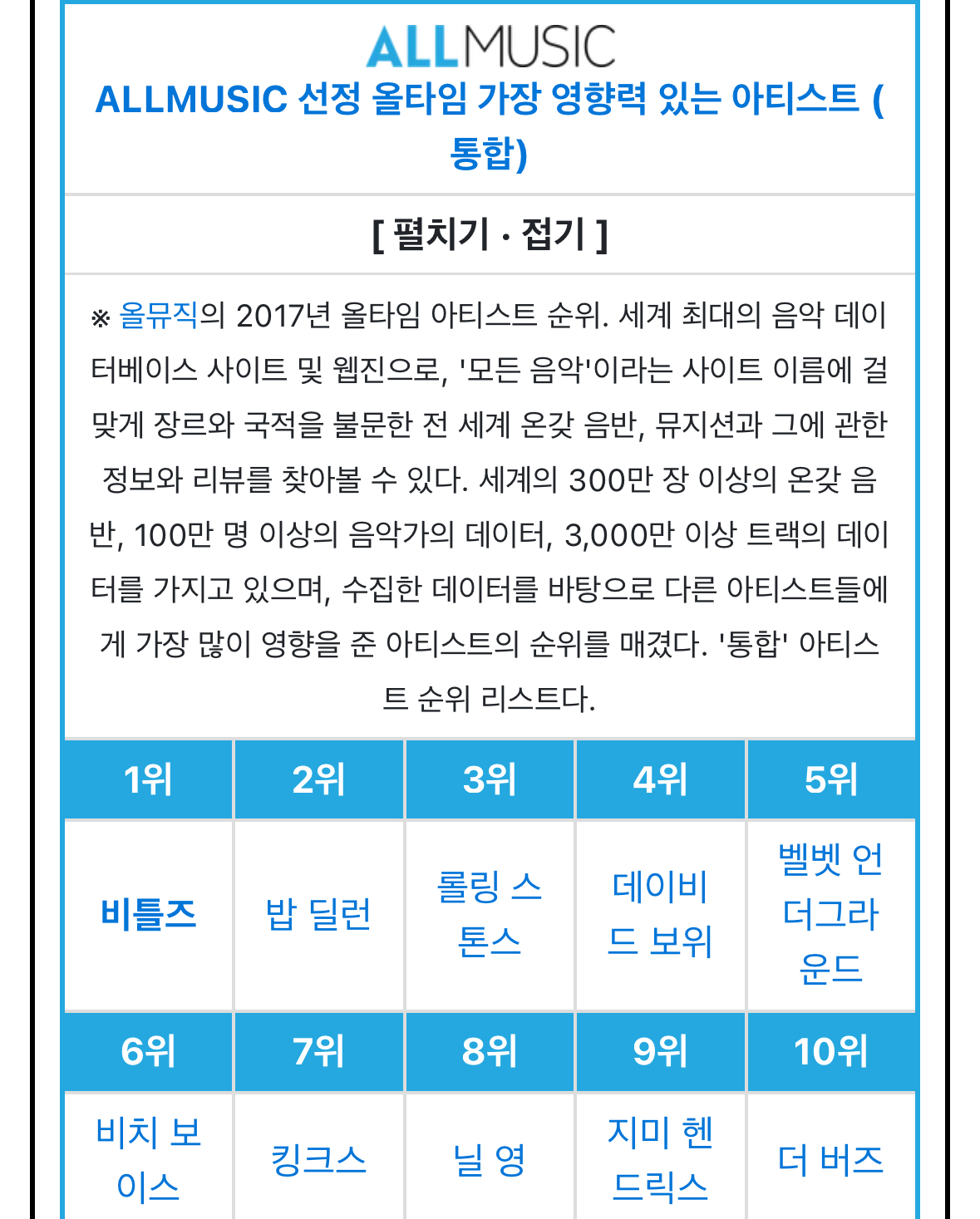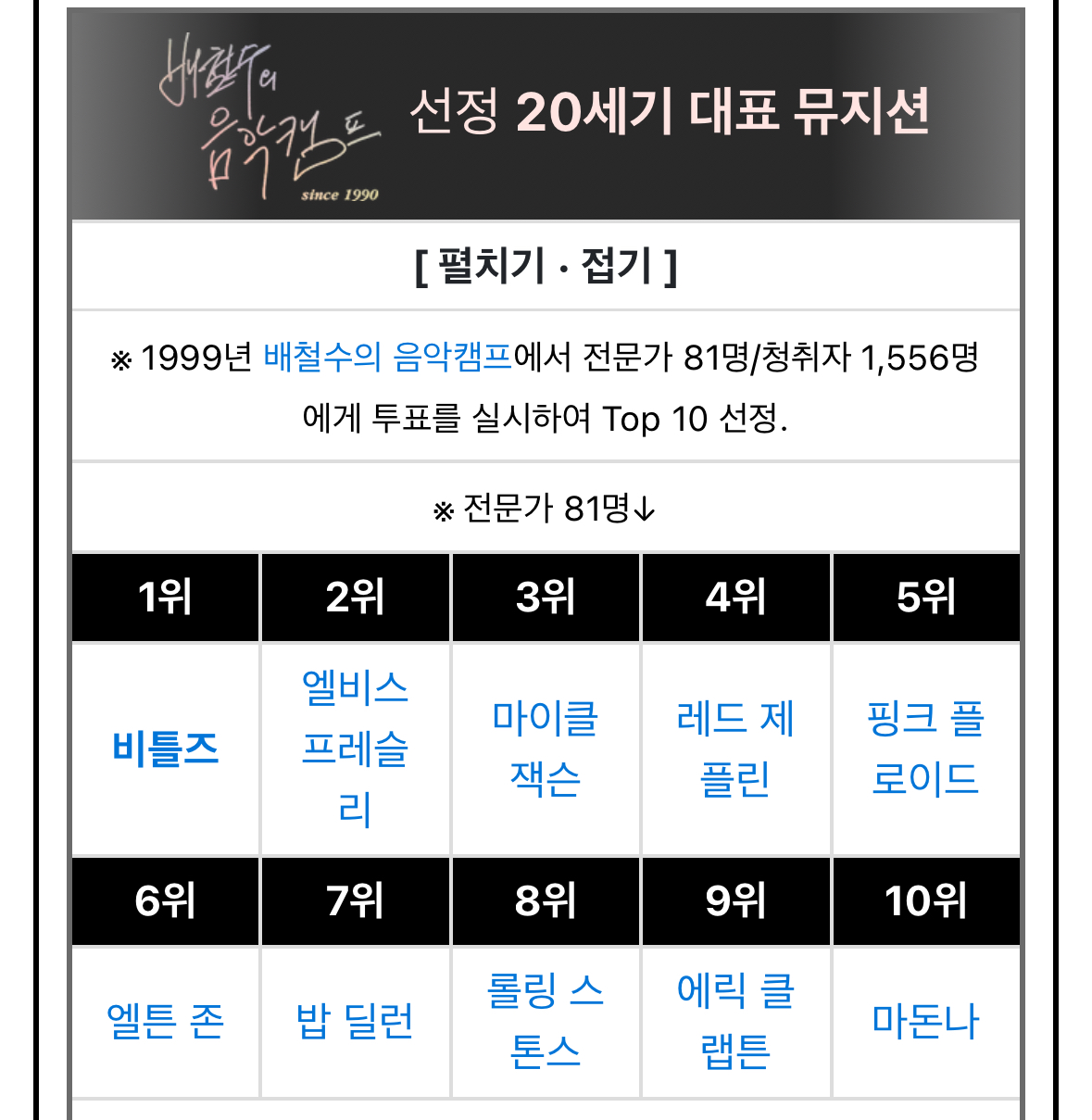 °¢Á¾ ¾ð·ÐµéÀÌ »êÁ¤ÇÑ ¿ª´ë À½¾Ç ¾ÆÆ¼½ºÆ®µé ¼øÀ§.jpg