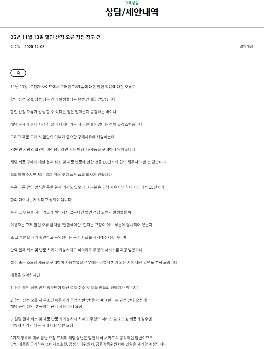 33¸¸¿øÀ̳ª ÇÒÀÎ ¹ÌÀû¿ëµÇ¸é ÇØ´ç Á¦Ç°À» ±¸¸ÅÇÏÁö ¾Ê¾ÒÀ»Å×´Ï °áÁ¦ Ãë¼Ò ¹Ýǰ¿¡ ´ëÇÑ ÇùÀÇ ¿äû ¹× ¹®ÀÇ »çÇ× Á¢¼ö