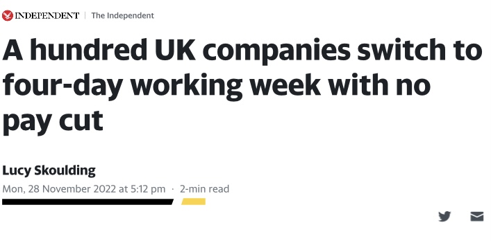 ¿µ±¹ 100°³ÀÇ È¸»çµéÀÌ ÀÓ±Ý »è°¨ ¾øÀÌ ÁÖ 4ÀÏÁ¦¸¦ ¿î¿µÇϱâ·Î 4 Day Week Campaign¿¡ ¼¸íÇÔ