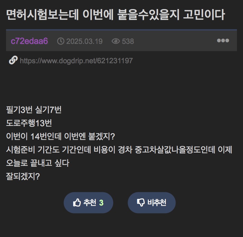 »ç½Ç ¸éÇã¶ó´Â°Ô ¸î¹ø ½ÃµµÇؼ µû´ÂÁö°¡ Áß¿äÇÑ°Ô ¾Æ´Ñ ¼öÁØÀ¸·Î ¸¸µé¾î¾ß µÇ´Âµ¥ Áö±Ý ¿îÀü¸éÇã´Â µû±â°¡ ³Ê¹« ½¬¿î°Ô ¹®Á¦ÀÎµí º¯È£»ç ½ÃÇè ¸¹ÀÌ ½ÃµµÇؼ ¶¤´Ù°í ´É·Â¿¡ ÀDZ¸½ÉÀ» °®Áö´Â ¾ÊÀݾÆ