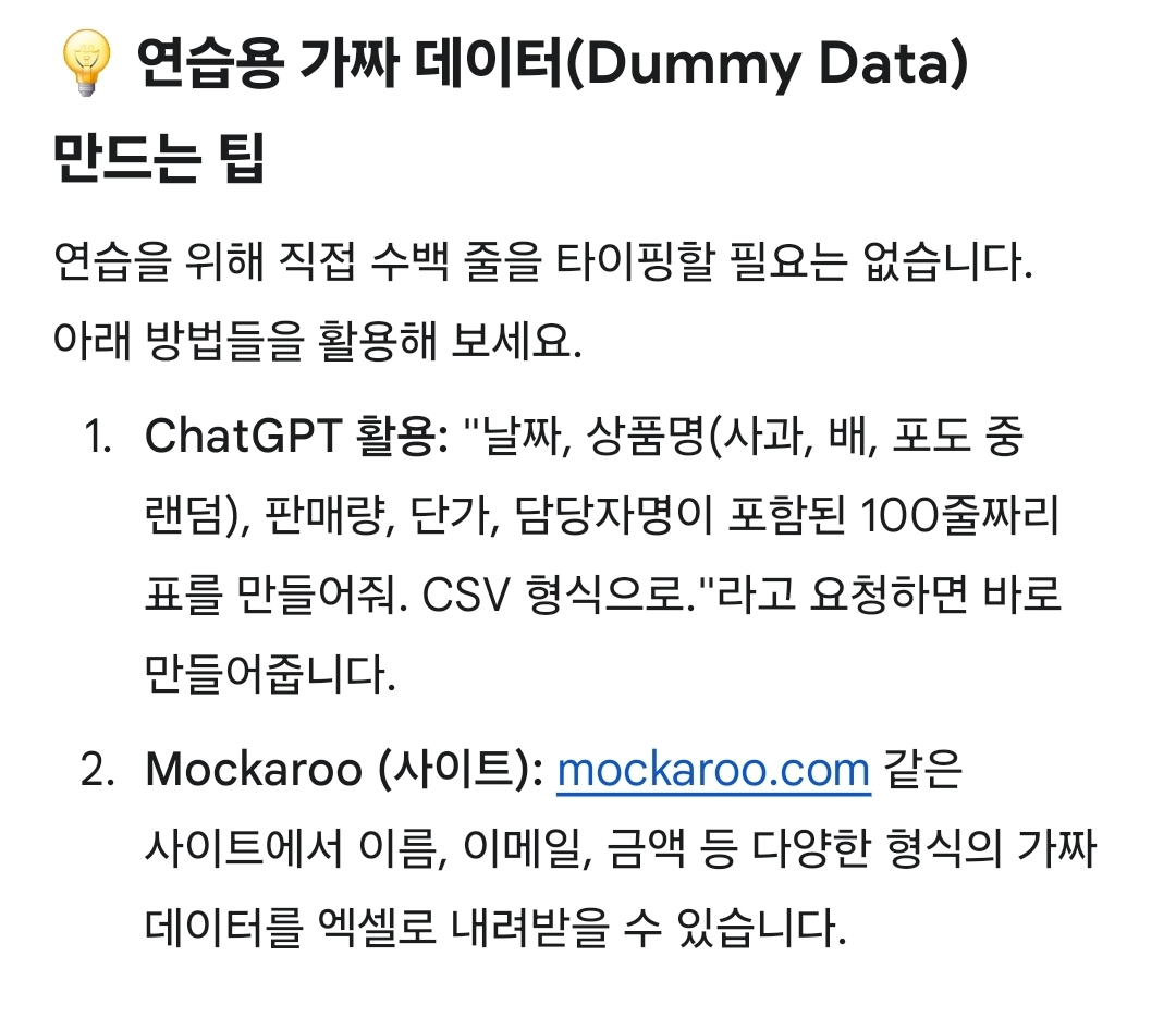 ¿¬½À¿ë °¡Â¥ ¿¢¼¿ µ¥ÀÌÅÍ ¹°¾îº¸´Ï±î