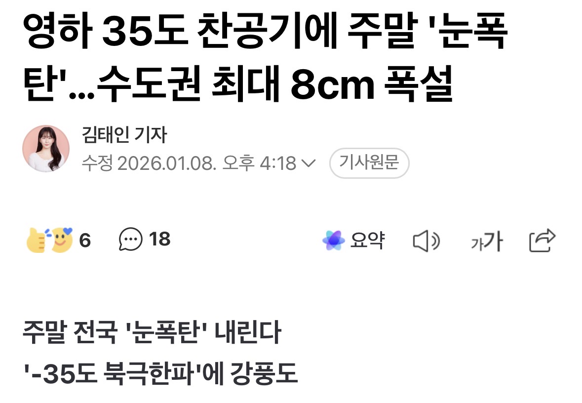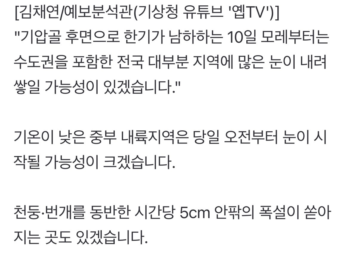 ¿µÇÏ 35µµ Âù°ø±â¿¡ ¡®ÁÖ¸» ´«ÆøÅº¡¯ ¼öµµ±Ç ÃÖ´ë 8cmÆø¼³