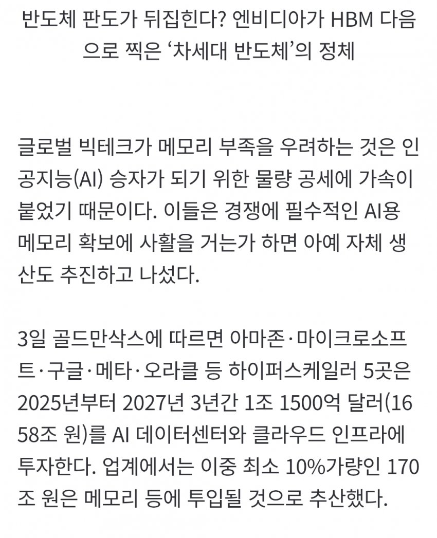 • ±Û·Î¹ú ºòÅ×Å© ±â¾÷µéÀÌ AI °æÀï·Â °­È­¸¦ À§ÇØ 2025³âºÎÅÍ 3³â°£ AI µ¥ÀÌÅͼ¾ÅÍ ¹× Ŭ¶ó¿ìµå ÀÎÇÁ¶ó¿¡ ÃÑ 1Á¶ 1500¾ï ´Þ·¯£¨¾à 1658Á¶ ¿ø£©¸¦ ÅõÀÚÇϸç, ÀÌ Áß »ó´ç ºÎºÐÀÌ ¸Þ¸ð¸® È®º¸¿¡ »ç¿ëµÉ °ÍÀ¸·Î ¿¹»óµÈ´Ù.