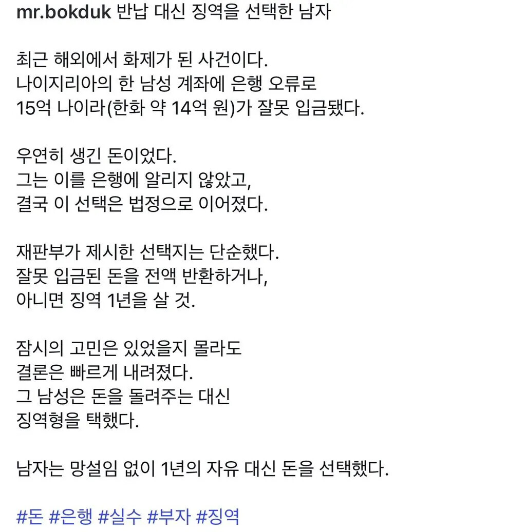 À߸ø ÀÔ±ÝµÈ µ·À» ¾Èµ¹·ÁÁÖ´Â ´ë½Å 1³â ¡¿ª °£ ³²ÀÚ