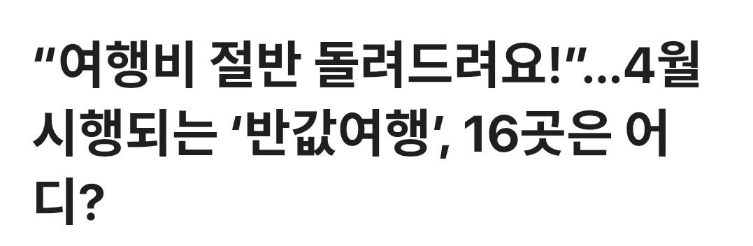¡°¿©Çàºñ Àý¹Ý µ¹·Áµå·Á¿ä!¡±¡¦4¿ù ½ÃÇàµÇ´Â ¡®¹Ý°ª¿©Ç࡯, 16°÷Àº ¾îµð?
