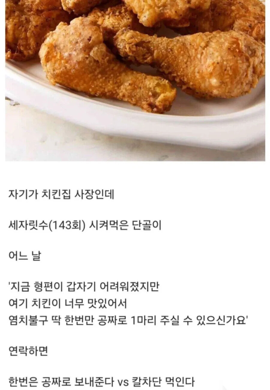 ¼ÖÁ÷È÷ 143ȸ³ª ½ÃŲ ´Ü°ñÀε¥..ġŲ ÇѸ¶¸® °øÂ¥·Î ´Þ¶ó°í Çß´Ù°í Ä® Â÷´Ü ¸ÔÀÏ »ç¶÷ÀÌ Á¤¸» ÀÖÀ»±î?