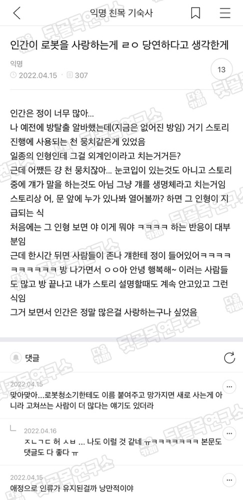 Àΰ£ÀÌ ·Îº¿À» »ç¶ûÇÏ´Â°Ô ¤©¤· ´ç¿¬ÇÏ´Ù°í »ý°¢ÇѰÔ