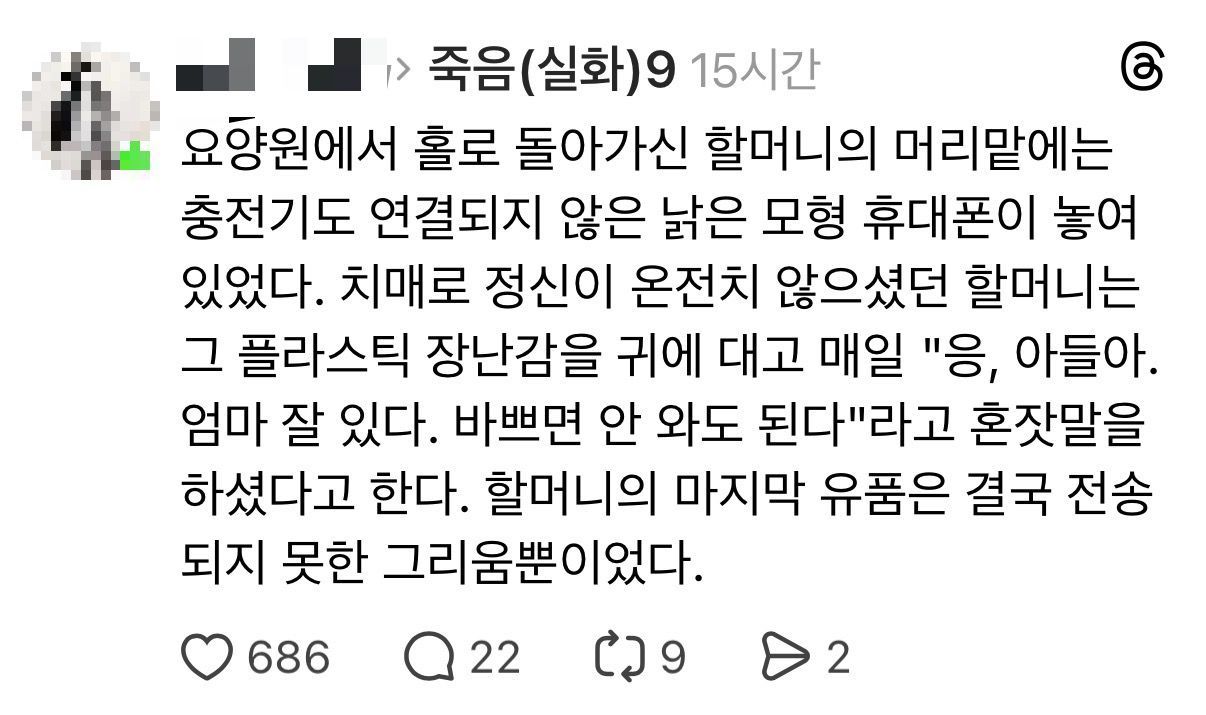 ¾Æµé¿¡°Ô ÀüÇØÁöÁö ¸øÇÑ ¾î¸Ó´ÏÀÇ ¸»¾¸