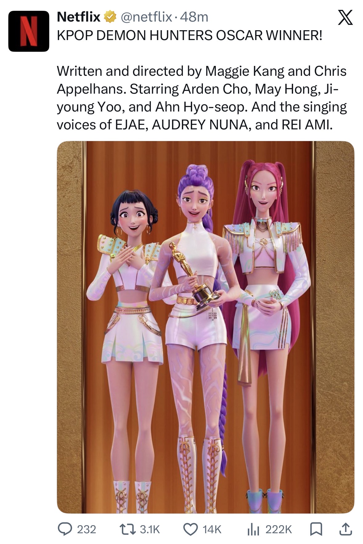 Äɵ¥Çå ¿À½ºÄ« ¼ö»óÇß³×