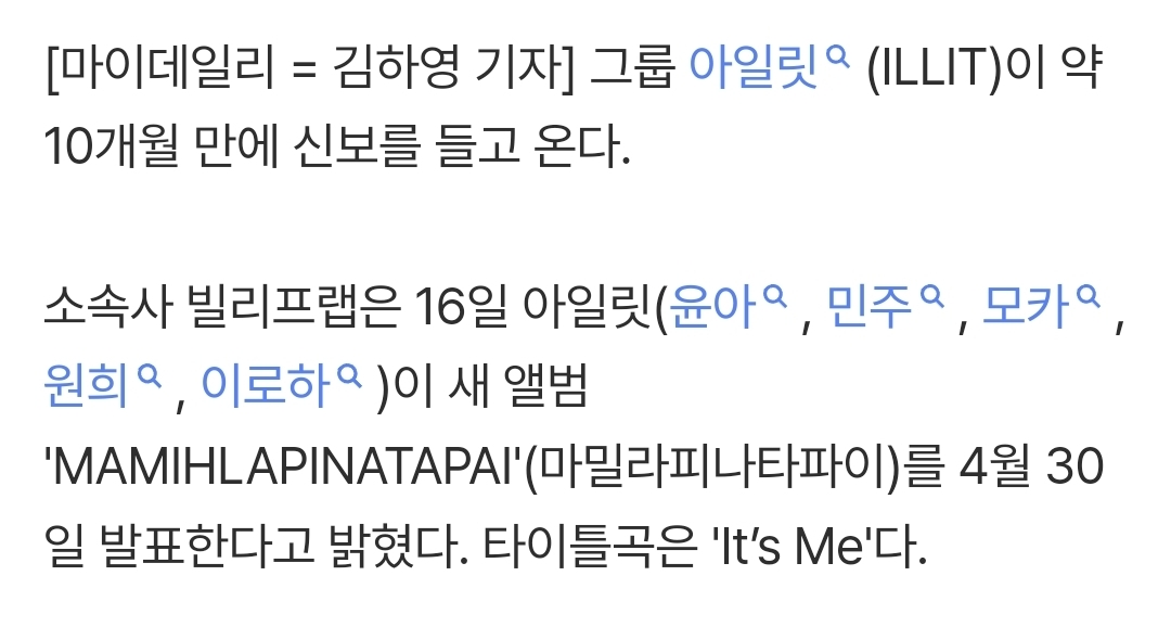 ¾ÆÀϸ´ ÄĹ顦 »õ ¾Ù¹ü¸íÀº 'Á¶ÀåÇϽǺÐ', ŸÀÌÆ²°îÀº '³ª¿¡¿ä'