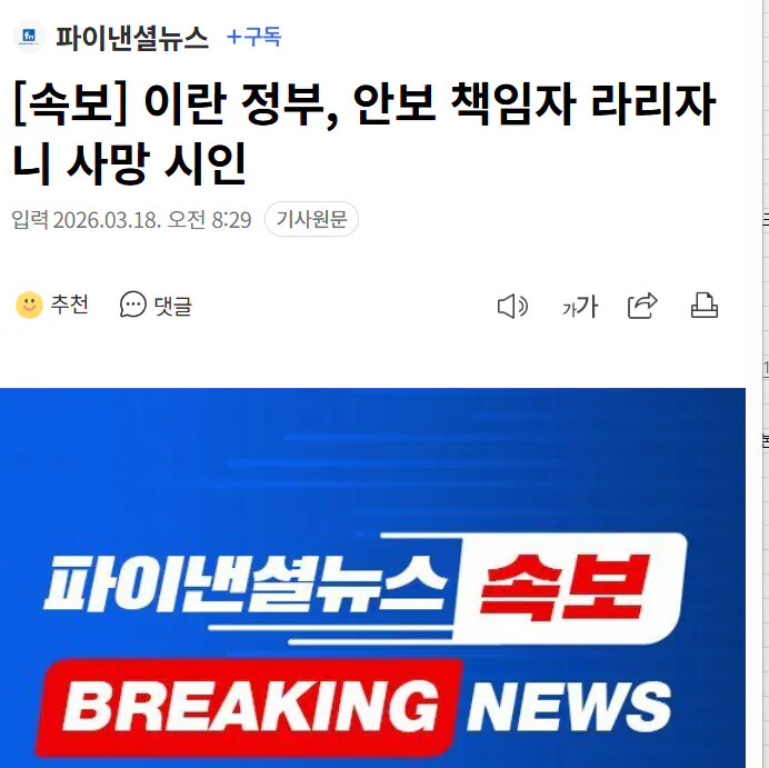 [¼Óº¸] À̶õ Á¤ºÎ, ¾Èº¸ Ã¥ÀÓÀÚ ¶ó¸®ÀÚ´Ï »ç¸Á ½ÃÀÎ