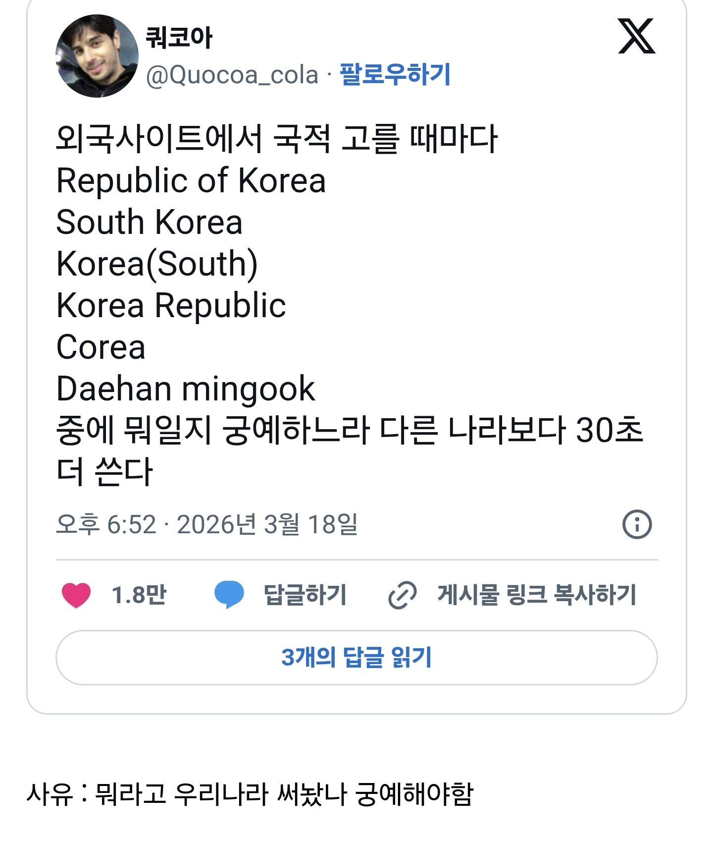 ¿Ü±¹»çÀÌÆ®¿¡¼ ±¹Àû °í¸¦¶§¸¶´Ù 30ÃÊ ´õ ¾²´Â ´ëÇѹα¹ ±¹¹Î