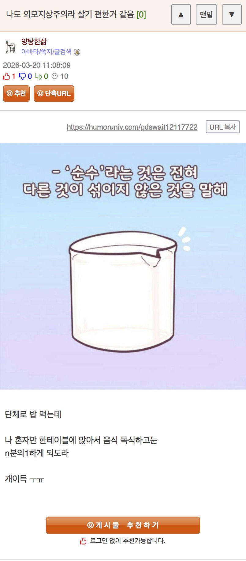 ³ªµµ ¿Ü¸ðÁö»óÁÖÀǶó »ì±â ÆíÇÑ °Å °°À½ -> ³ª°°Àº Á¸Àß ±â¸¸ÀÚµéÀÇ ±âºÐÀ» ³Ê³×°¡ ¾Æ³Ä?? ÀÌ Àΰ£À̶ó ºÎ¸£±âµµ ¹½ÇÑ °³ÀâÁ¾ ¸ø»ý±ä °Íµé¾Æ