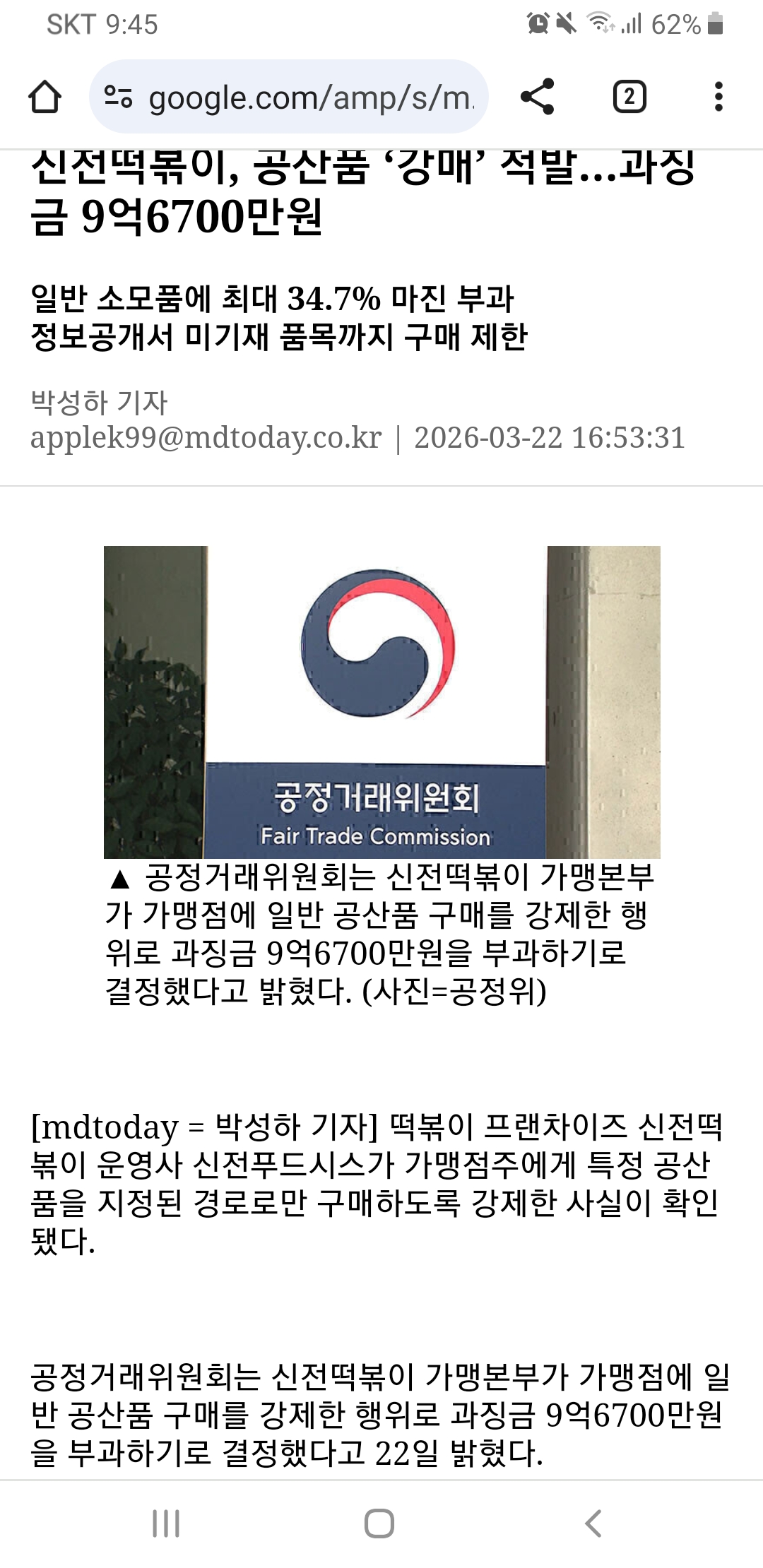 °øÁ¤°Å·¡À§¿øÈ¸´Â ½ÅÀü¶±ººÀÌ °¡¸Íº»ºÎ°¡ °¡¸ÍÁ¡¿¡ ÀÏ¹Ý °ø»êǰ ±¸¸Å¸¦ °­Á¦ÇÑ ÇàÀ§·Î °ú¡±Ý 9¾ï6700¸¸¿øÀ» ºÎ°úÇϱâ·Î °áÁ¤Çß´Ù°í 22ÀÏ ¹àÇû´Ù.