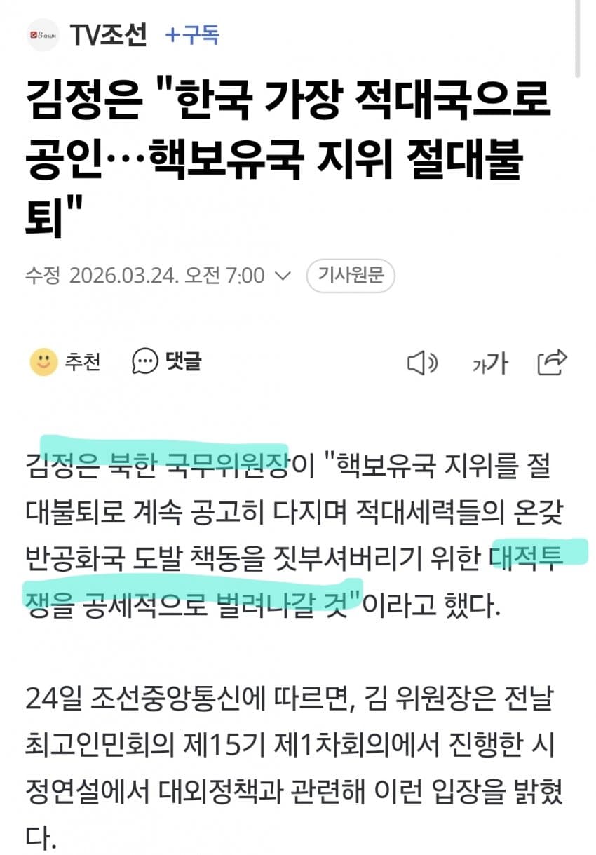 ±èÁ¤Àº "Çѱ¹ °¡Àå Àû´ë±¹À¸·Î °øÀÎ"