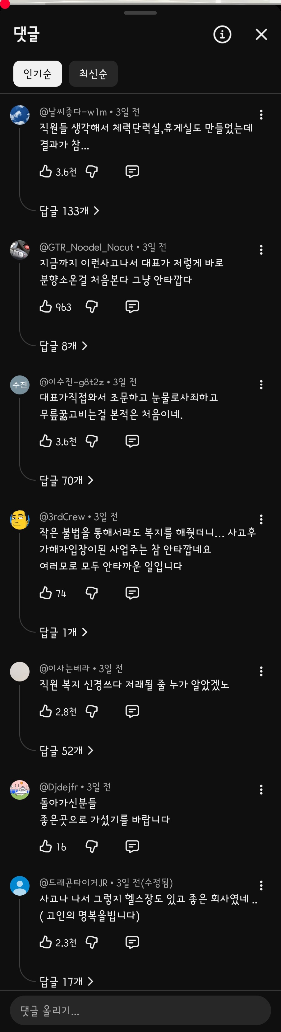 Àú°Å ¿µ»ó¸¶´Ù ´ñ±Û ºÐÀ§±â ´Ù ´Ù¸§ ¤¾¤¾ ³ªÁß¿¡ ¸·¸»ÇÑ ¿µ»ó¿¡¼´Â '½Ç¸ÁÀÌ´Ù', '¼Ó¾Ò´Ù'¶ó´Â ´ñ±ÛÀÌ ´ëºÎºÐÀÓ