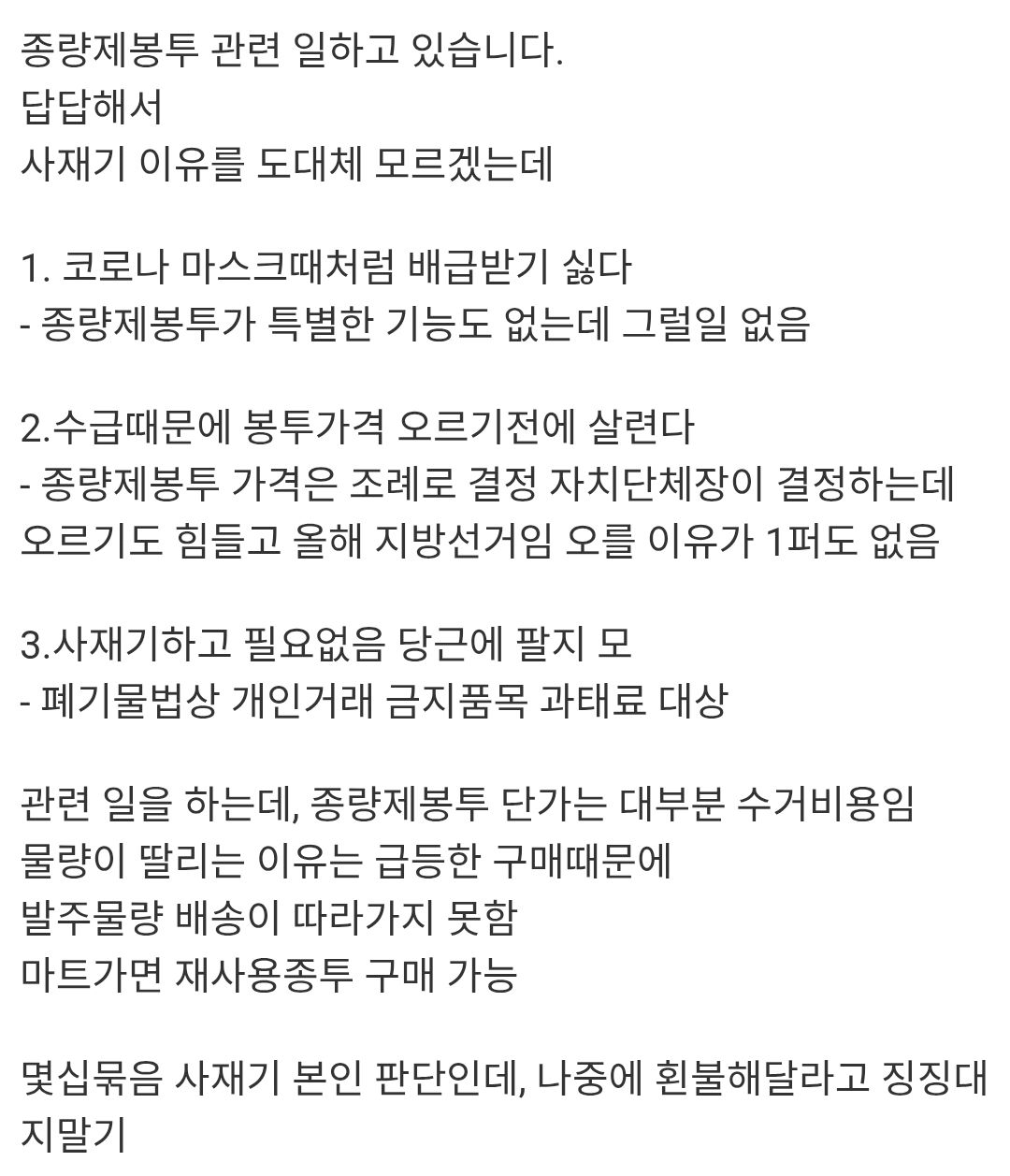 ¼ÖÁ÷È÷ ¸ÛÃ»ÇØ¼ ¿Ü¿¡´Â ÀÌÀ¯¸¦ ¸ð¸£°ÚÀ½... Á¾·®Á¦ ºÀÅõ°¡ ¹ºÁö ÀÚü¸¦ ÀÌÇØ¸¦ ¸øÇϴ°ǰ¡ Á¾·®Á¦ °¡°ÝÀÌ ºÀÅõ°ªÀÌ ¾Æ´Ñµð...