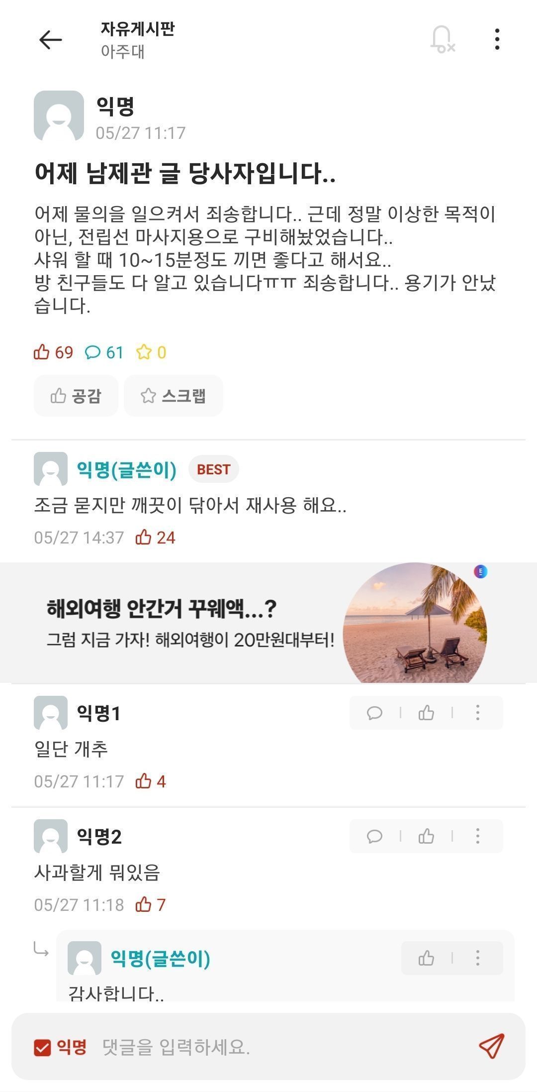 ´ä±Û ÀÛ¼ºÇϱâ (·Î±×ÀÎ ÇÊ¿ä)