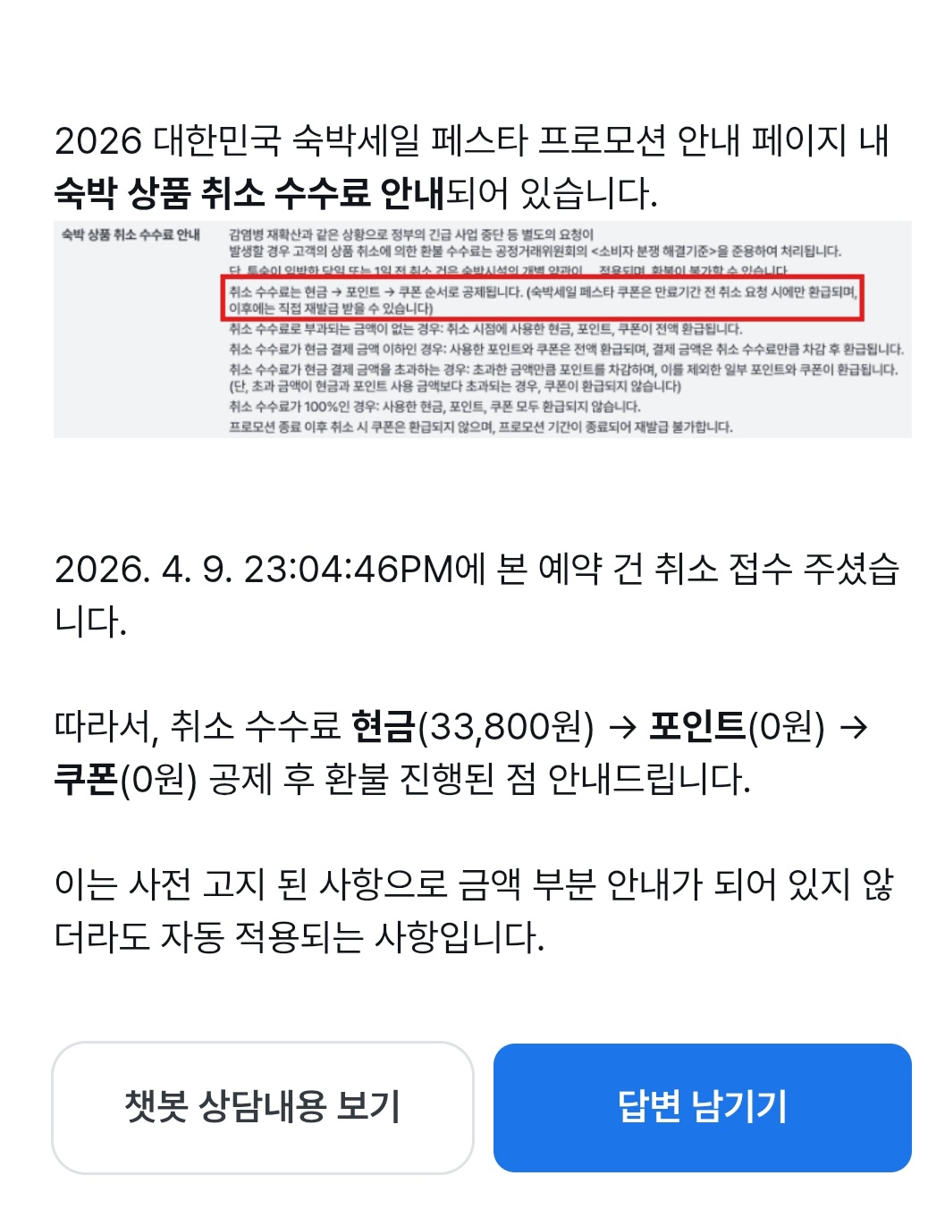 ³»°¡ °³Áø»óÀΰ¡ ºý´ë°¡¸®Àΰ¡ ³Ê¹« ±Ã±ÝÇѵ¥ ½´¹Ù ¾îµð ¹°¾Æº¼µ¥°¡ ¾ø¾î!!!!!! ¾îÁ¦ ¸¶À̸®¾óÆ®¸³¿¡¼­ 169000¿ø ¼÷¼Ò¸¦ ¼÷¼¼Æä ÄíÆù 3¸¸¿ø ¸Ô¿©¼­ 139000¿øÀÌ °áÁ¦Çß¾î ±×¶§ Ãë¼Ò ±ÔÁ¤ ´­·¯º¸´Ï µü ¼¼ÁÙ ½áÀÖ¾ú¾î. ±× Áß ¹ã 12½Ã Àü±îÁö Ãë¼ÒÇϸé 135200¿ø ȯºÒÀ̾ú´Âµ¥ Ãë¼ÒÇϸé 105000¿ø¸¸ ÁÖ³×? Á¤°¡±âÁØ 169000¿øÀ϶§ ȯºÒ±Ý¾×ÀÎ°Å°í ¼÷¼¼Æä ÄíÆù »©°í °Å±â¼­ ȯºÒ¼ö¼ö·á¸¦ Â÷°¨ÇѰŷ¡. ¾îµð¿¡?????¾îµð¿¡???? ±×·±¾ê±â ÀֳĴϱñ ÄíÆù ¹ÞÀ» ¶§ ȯºÒ¼ö¼ö·á´Â Çö±Ý¿¡¼­ Â÷°¨ÇÑ´Ù°í ½áÀÖ´ë. ·ë °áÁ¦ÇÒ¶§ Ãë¼Ò±ÔÁ¤¿¡ ¶±Çã´Ï 13¸¸¿ø ȯºÒµÈ´Ù ½á³õ°í ±× ¿Ü ÀÏÀý ´Ù¸¥ ¼³¸í ¾ø¾ú¾î. Àú ¼¼ÁÙÀÌ ´Ù¿´´Ù°í. ¾îµð¿¡µµ ȯºÒ¼ö¼ö·á°¡ 33000¿øÀÌ´Ù. ½Ç °áÁ¦±Ý¾×¿¡¼­ Â÷°¨ÇÑ´Ù. ȯºÒ°¡´É±Ý¾× 13¸¸¿øÀº Á¤°¡±âÁØÀ϶§°í ÇÒÀι޾ÒÀ¸¸é ±× ±Ý¾×ÀÌ ¾Æ´Ï´Ù. À̵ý ¼³¸íÀÌ ÇÑ °÷µµ ¾ø´Ù°í!!!!!!!! ³»°¡ ȯºÒ¼ö¼ö·á¸¦ µ¹·Á´Þ¶ó´Â°Ô Áø»óÀ̾ß??? ³»°¡ ³Ê¹« ´ç¿¬ÇÑ°É ¸ð¸¥ ºý´ë°¡¸®¾ß??? ¾Æ¾¾ ¤µ¤² ±×³É °¥±î ´Ù½Å ÀÌ »õ³¢µé ¾È¾´´Ù »ý°¢ Áß »ó´ã¿øÀÌ ÀÏ´Ü Ãë¼ÒÇØ¾ß ÀÌÁ¤µµ ¼Õ½ÇÀ̶ó¸ç Ãë¼Ò±ÇÀ¯µå¸®°í ÃßÈÄ È¯±ÞÀº ³»ºÎ¿¡¼­ ´Ù½Ã È®ÀÎÇØº¸°Ú´ë¼­ Ãë¼ÒÇß´õ´Ï ¤»¤»¤» ¾ÈµÈ´ë µ· ¾Æ±õÁö ½ßµ·ÀÌÀÝ¾Æ ±Ùµ¥ ¤µ¤² ³­ ´Ù½Ã µ¹¾Æ°¡µµ Àú 13¸¸¿øÀÌ È¯ºÒ±Ý¾×ÀÌ·¯°í ¹Ï°í ¿¹¾àÇҰ۰°Åµç?????? ³»°¡ ÁøÂ¥ Áø»óÀ̾ß????? ¤Ì¤Ì ³ª ³Ê¹«³Ê¹« ¾â¹Ùµ¢
