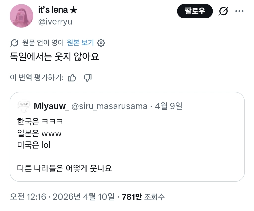¹º ¼Ò¸®ÀÎÁö ¸ô¶ó¼ ÁöÇÇÆ¼ÇÑÅ× ¹°¾îºÃ³×. ±×°Ç µ¶ÀÏÀο¡ ´ëÇÑ ÀÎÅÍ³Ý½Ä ³ó´ãÀÌ¿¡¿ä. ÇÙ½ÉÀº ÀÌ·± ¶æÀÔ´Ï´Ù. ¡®µ¶ÀÏÀÎÀº ³Ê¹« ÁøÁöÇÏ°í ¹«¶Ò¶ÒÇØ¼, °ø°³ÀûÀ¸·Î´Â Àß ¾È ¿ô°í ¿ôÀ¸·Á¸é ³²µé ¾È º¸´Â ÁöÇϽǿ¡ °¡¾ß ÇÑ´Ù¡¯´Â ½ÄÀÇ °úÀåµÈ ¹ÒÀÌÁÒ. ±×·¡¼ ´ä±Û¿¡ ³ª¿Â ¡®¿ì¸®´Â ±×·¸°Ô ÇÏÁö¸¸, ±×·¯·Á¸é ÁöÇϽǿ¡ °¡¾ß ÇØ¿ä¡¯¶ó´Â ¸»ÀÌ ¿ô±ä Æ÷ÀÎÆ®°¡ µË´Ï´Ù. Á¶±Ý ´õ Ç®¾î ¸»Çϸé: • Çѱ¹ÀÇ ¡®¤»¤»¤»¡¯, ÀϺ»ÀÇ ¡®www¡¯, ¹Ì±¹ÀÇ ¡®lol¡¯Ã³·³ ¡®¾î¶»°Ô ¿ôÀ½À» Ç¥ÇöÇÏ´À³Ä¡¯´Â Áú¹®¿¡ • µ¶ÀÏ ÂÊ ´äº¯Àº ¹®ÀÚ Ç¥ÇöÀ» ¸»ÇÏ´Â ´ë½Å • ¡®¿ì¸° ¾ÖÃÊ¿¡ ´ë³õ°í ¾È ¿ô´Â´Ù¡¯´Â °íÁ¤°ü³äÀ» ºñƲ¾î ³ó´ãÇÑ °Å¿¹¿ä. ¿©±â¼ ¡®ÁöÇϽǡ¯Àº ½ÇÁ¦ ¹®È °ü½ÀÀ̶ó±âº¸´Ù, • µ¶ÀÏÀÎÀº ÁøÁöÇÏ´Ù • °¨Á¤À» °ÑÀ¸·Î ´ú µå·¯³½´Ù • À¯¸Ó°¡ °ÇÁ¶ÇÏ´Ù ¶ó´Â Æí°ß ȤÀº ½ºÅ×·¹¿ÀŸÀÔÀ» ±Ø´ÜÀûÀ¸·Î °úÀåÇÑ ÀåÄ¡ÀÔ´Ï´Ù. Áï, ÁøÂ¥·Î ¡®µ¶ÀÏÀεéÀº ¿ôÀ» ¶§ ÁöÇϽǿ¡ °£´Ù¡¯´Â ¶æÀÌ ¾Æ´Ï¶ó, ¡®µ¶ÀÏÀÎÀº ³Ê¹« ÁøÁöÇØ¼ ¿ô´Â °Íµµ ¸ô·¡ ÇÒ °Í °°´Ù¡¯´Â ÀÚÁ¶Àû ³ó´ãÀ̶ó°í º¸¸é µË´Ï´Ù. ¿øÇϽøé ÀÌ ¹Ò¿¡ ³ª¿Â µ¶ÀÏ¾î ¡®immer!!¡¯°¡ ¿Ö ¿ô±äÁöµµ °°ÀÌ ¼³¸íÇØµå¸±°Ô¿ä.