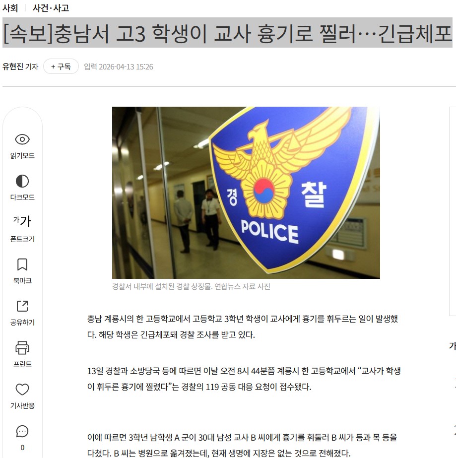 [¼Óº¸]Ãæ³²¼ °í3 ÇлýÀÌ ±³»ç Èä±â·Î Âñ·¯¡¦±ä±ÞüÆ÷