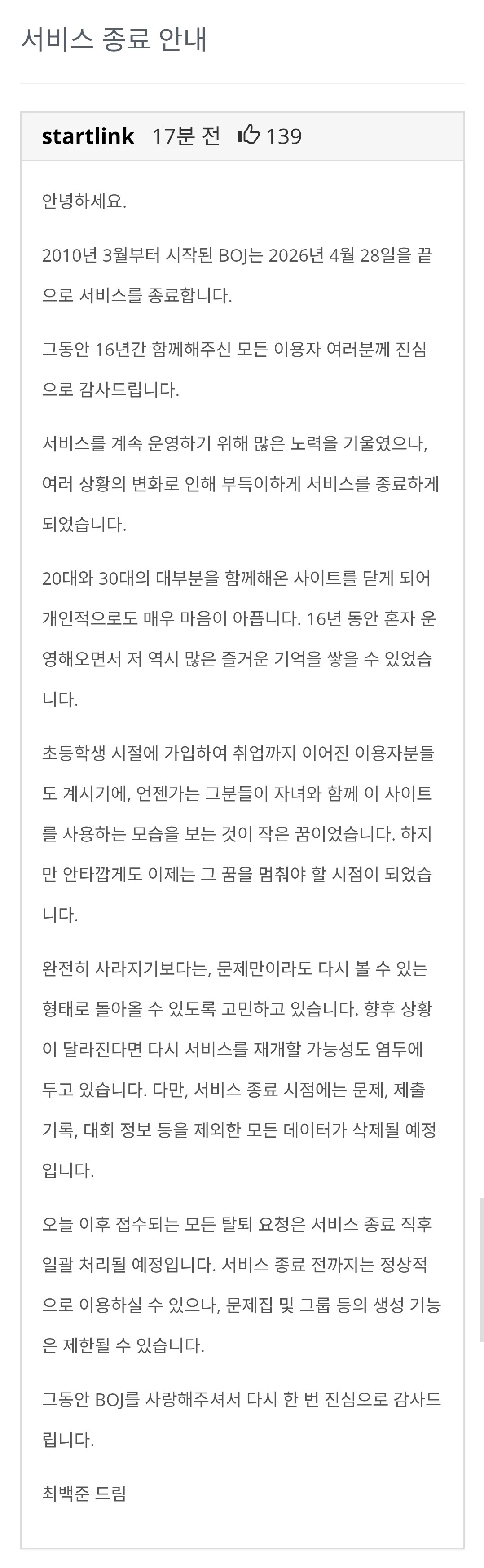 ÄÚµùÅ×½ºÆ® ¹éÁØ ¼ºñ½º Á¾·á