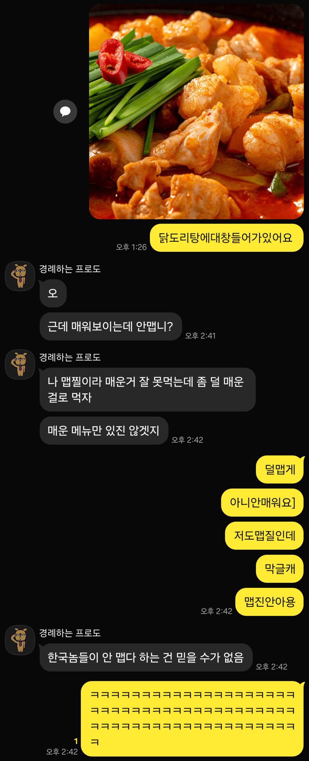 ³ªµµ Çѱ¹ÀÎÀε¥ ¸Å¿î°Å ¸ø¸ÔÀ½ ¸· ¸Ô°í³ª¸é °£Áö·´°í ±×·¯±æ·¡ º´¿ø °¡´Ï±î ¾Ë·¹¸£±â ¹ÝÀÀ À̶ó°í Àû´çÈ÷ ¸Å¿î°Å ¸ÔÀ¸·¡ ¤Ì¤Ì