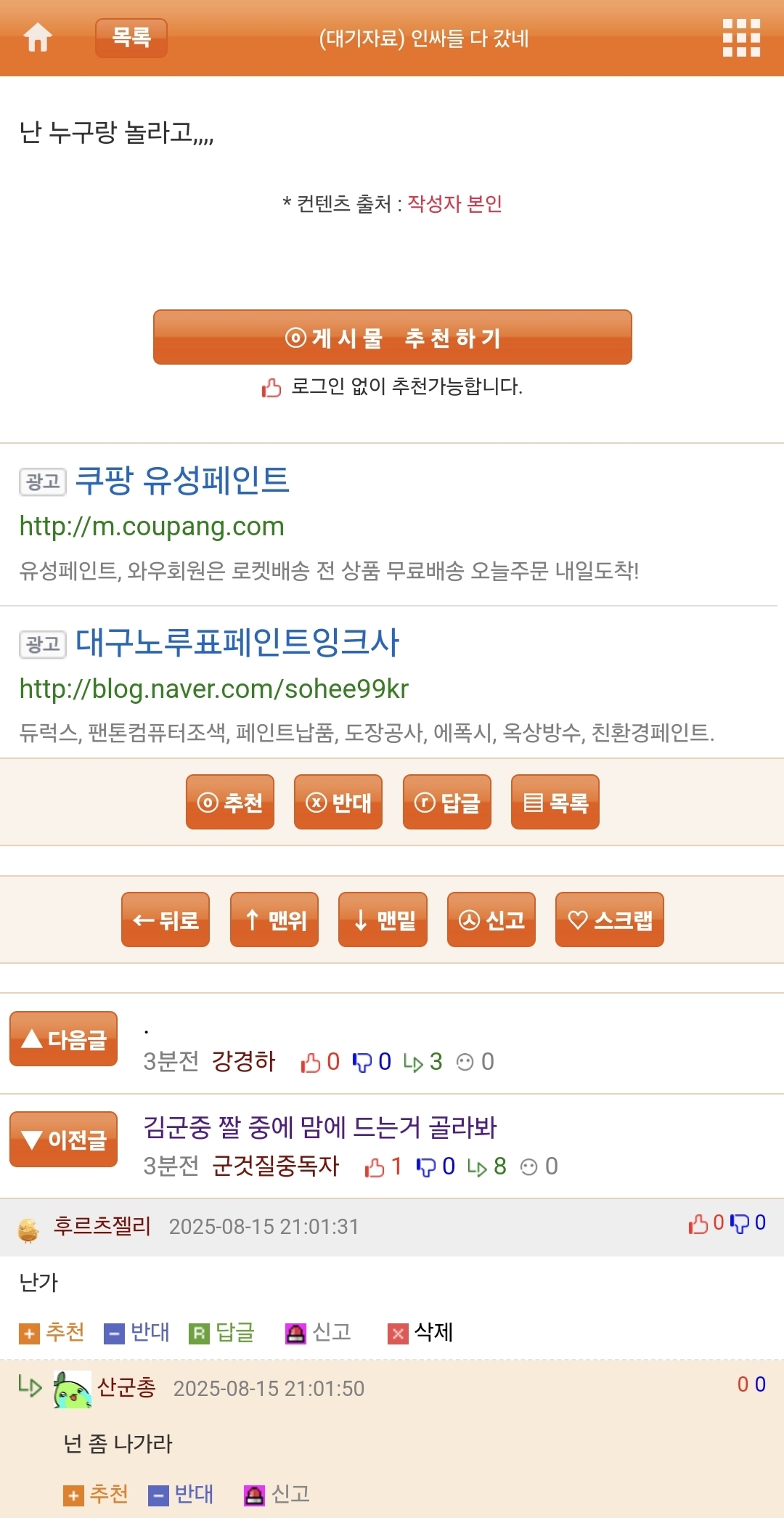 ´ä±Û ÀÛ¼ºÇϱâ (·Î±×ÀÎ ÇÊ¿ä)