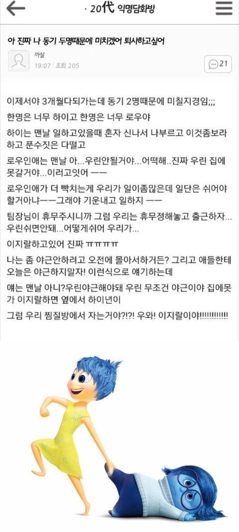 ³ª µ¿±â µÎ ¸í ¶§¹®¿¡ ¹ÌÄ¡°Ú¾î Åð»çÇÏ°í ½Í¾î