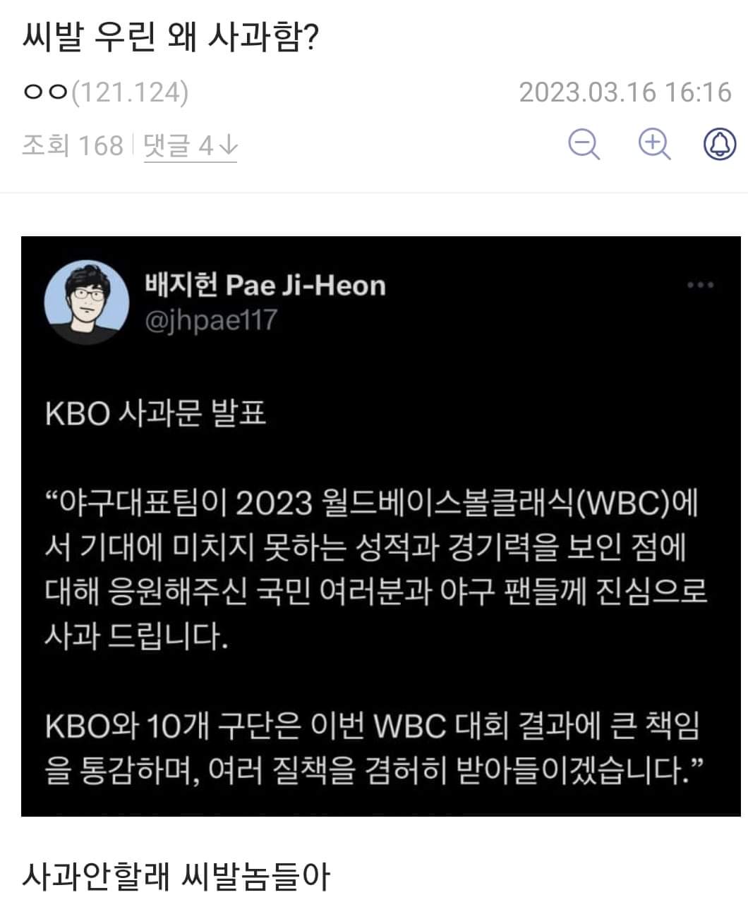 ÁÁµç ½Èµç ÆÒÀÌ ÀÖ¾î¼ ¿ì¸®³ª¶ó ¾ß±¸ ÇÁ·Î¸®±×°¡ ¼º¸³ÇÏ´Â°Å°í ±â´ë ÀÌÇÏÀÇ ¼ºÀûÀ¸·Î ¾öû³ ºñ³À» ¹Þ°í ÀÖÀ¸´Ï »ç°úÇÏ¸é¼ ¿ì¸® ¹Ù²î°Ú´Ù ÇÏ°í ¹ßÇ¥ÇÏ´Â°Ô ±×·¸°Ô ¸· ÀÌ»óÇÏÁø ¾ÊÀº°Å °°Àºµ¥ À̰ŵµ ³» °³ÀÎÀûÀÎ »ý°¢ÀÏ »Ó