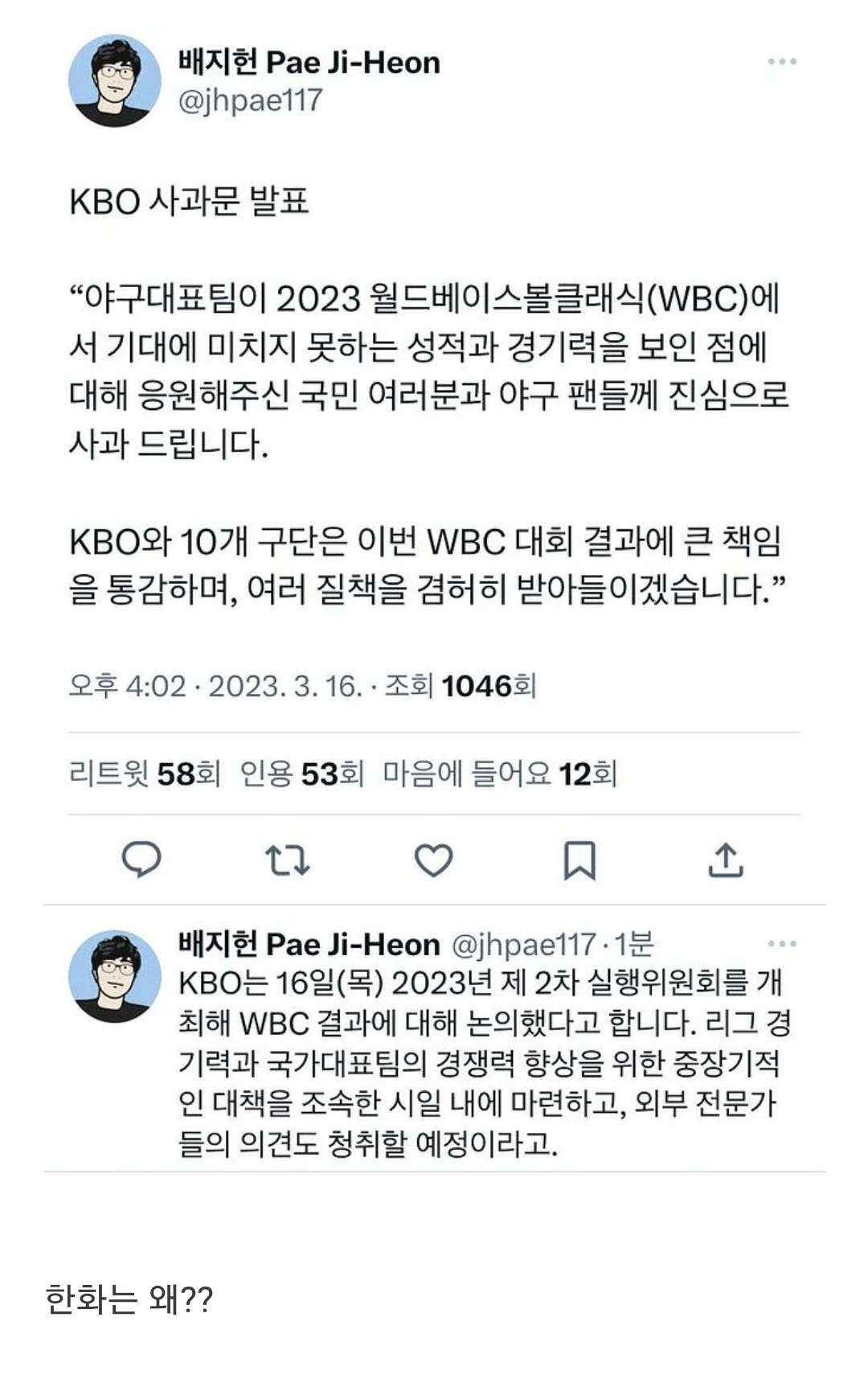 À̹ø Âü»ç´Â ±×³É Çѱ¹¾ß±¸°¡ ¾ß±¸¸¦ ´õ·´°Ô ¸øÇ߱⠶§¹®ÀÓ. ±×¸®°í ±× ±â·® ÀúÇÏ´Â ¼±¼ö °³°³ÀÎÀÇ Á¤½Å·ÂÀ¸·Î ¾î¶»°Ô ÇÒ ¼ö ÀÖ´Â°Ô ¾Æ´Ô. ¸®±× ½Ã½ºÅÛ°ú ¼±¼ö À°¼º °úÁ¤ Àü¹ÝÀÇ ¹®Á¦°í, ÀÌ·± ¸®±×¸¦ ¸¸µç ¼ÒÀ§ ¿ø·Îµé, ÁöµµÀÚµé, ´õ ³ª¾Æ°¡ ¸®±× ÀüüÀÇ À߸øÀÓ. ¸·¸»·Î 1954³â¿¡ Ã౸±¹´ë°¡ Çë°¡¸®ÇÑÅ× 9