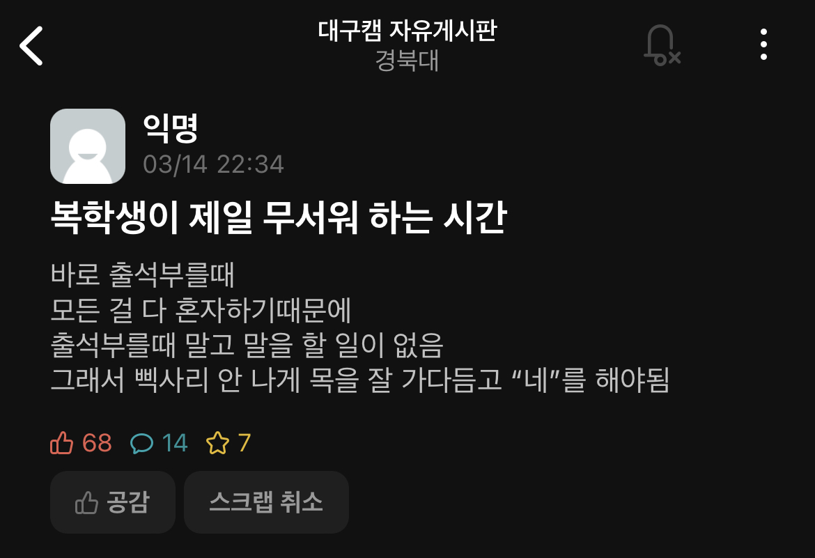 º¹ÇÐÇÏ¸é ¸Ç ¾Õ¿¡ ºÒ·¯Áشٰí. ¾î¶²¾Ö´Â ±×°Å ¾Ë°í °ú¸ñ Ãë¼ÒÇϰí Á¤Á¤±â°£¿¡ ´Ù½Ã ½ÅÃ»ÇØ¼ Ãâ¼®ºÎ ¸Ç µÚ·Î°¡´õ¶ó