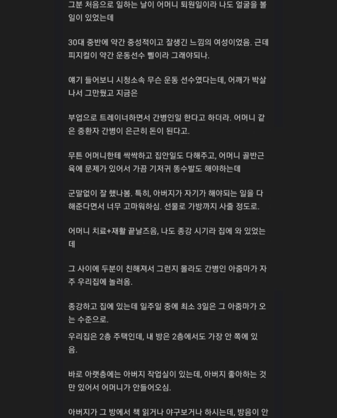 ³ »ç½Ç »ó°ü¾ø±ä ÇÒµí. ³ªÀÇ ºÎ¸ð´ÔÀ̱â Àü¿¡ »ç½Ç ¹¹ ³ªÃ³·³ ÇÑ ¸íÀÇ »ç¶÷ÀΰŴϱ ¹°·Ð ÀÚ½Ä ÀÔÀå¿¡¼± Ãæ°ÝÀûÀÏ ¼ö ÀÖ°í ÀÌÇØÇϴµ¥ ³» ±âÁØ¿¡¼´Â ¼·Î ÇÕÀǰ¡ ¾ÈµÈ °Íµµ ¾Æ´Ï°í ÇÑÂÊÀÌ ºÒÇàÇÑ °Íµµ ¾Æ´Ï°í ŸÀο¡°Ô ÇÇÇØÁÖ´Â °Íµµ ¾Æ´Ï°í ±×·³ »ó°ü¾ø±ä ÇØ.