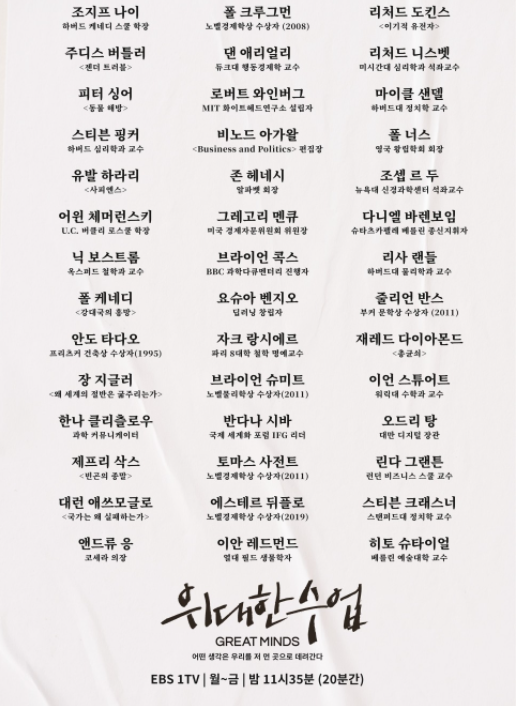 [ºÎ¿¬¼³¸í] ±×¹Û¿¡ EBS°¡ ´ÙÅ¥ÇÁ¶óÀÓ µîÀ» ÅëÇØ ¼ö½Ê³â°£ ÃàÀûÇØ¿Â Á¦ÀÛ ³ëÇÏ¿ì¿Í ¼¼°è ¼®ÇÐ ³×Æ®¿öÅ©¸¦ ÃÖ´ëÇÑ È°¿ëÇßÀ¸¸ç °®°í ÀÖ´Â ÀθƵµ ÃÖ´ëÇÑ È°¿ëÇß´Ù. À§¿¡ ¾ð±ÞÇÑ ¾Æ°¡¿Ð ±³¼öÀÇ °æ¿ì Ç㼺ȣ Ã¥ÀÓÇÁ·Îµà¼ÀÇ Àº»çÀÎ ¼¿ï´ë ±¸¹Î±³ ÇàÁ¤´ëÇпø ±³¼ö°¡ ±×ÀÇ Á¦ÀÚÀ̰í Çѱ¹¿¡ ¿ÔÀ» ¶§ Çѱ¹ ¾È³»¸¦ ¸ÃÀº Àο¬À¸·Î Ã⿬À» ¼·¿ÜÇß´Ù. ´ÙÇàÀÎ °ÍÀº ½ÃÁð 1ÀÌ ¼º°øÀûÀ¸·Î ³¡³ªÀÚ ¼¼°è ¼®ÇÐµé »çÀÌ¿¡ "À§´ëÇÑ ¼ö¾÷'Àº ÁÁÀº ÇÁ·Î±×·¥ÀÌ´Ï ¹Ï°í ³ª°¡µµ µÈ´Ù."¶ó´Â ÀÔ¼Ò¹®ÀÌ ÆÛÁ®¼ ¼·¿Ü°¡ ½¬¿öÁ³°í ½ÃÁð 1 Ã⿬ÀÚ ¸®½ºÆ®¸¦ º¸³»¸é¼ ¼·¿Ü ¿äûÀ» Çϸé "ºÒ·¯Á༠¿µ±¤"À̶ó´Â ¹ÝÀÀÀÌ ³ª¿Ã Á¤µµ·Î ºÐÀ§±â°¡ ´Þ¶óÁ³´Ù°í ÇÑ´Ù. ÇöÀç EBS ȨÆäÀÌÁö¿Í Çѱ¹Çü ¿Â¶óÀÎ °ø°³°ÁÂÀÎ K-MOOC¸¦ ÅëÇØ Á¦°øµÇ°í Àִµ¥ ´õºùÆÇ°ú ÀÚ¸·ÆÇÀÌ µû·Î ÀÖ´Ù. ±Û·Î¹ú OTT Ç÷§Æû thegreatminds.com µµ ·±ÄªÇؼ Çѱ¹¾î, ¿µ¾î, Áß±¹¾î, ÀϺ»¾î, ½ºÆäÀξî, ÇÁ¶û½º¾î µî 6°³±¹¾î·Î Àü ¼¼°è¿¡¼µµ µéÀ» ¼ö ÀÖ´Ù.
