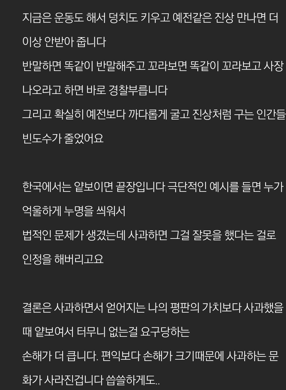 ½ÇÁ¦·Î ½Ç¼ö·Î Á¢Ã˽à »ç°úÇÏ¸é ¼ºÃßÇàÀÎÁ¤Çϴ°Ŷó°í ±Û´õ¶ó, ¿¹Àü ¿ô´ë¿¡µµ ¿Ã¶ó¿Ô´ø ¸¶Æ®¿¡¼ ºÎµúÃÆ´Ù°í ¤¸¤©¤¸¤©ÇÏ´ø ºÎºÎÀ̾߱⵵ ±×·¸°í ¿äÁò »ç¶÷µéÀÌ ¾î? ³Ê°¡ »ç°ú¸¦ ÇØ? ³Ê À߸øÀ» ÀÎÁ¤Çß³×? ³Í ÀÌÁ¦ ¾ÆÁÖ Á×ÀϳðÀÌ´Ï ³ªÇѵ¥ Å©°Ô º¸»óÇØ¾ßÇØ! ÀÌ·± ½ÄÀ¸·Î ÇൿÇÏ´Â »ç¶÷µéÀÌ ¸¹¾ÆÁø°Åµµ »ç½ÇÀ̶ó ÁøÂ¥ À߸øÇѰŠ¾Æ´Ï¸é ÀÇ·ÊÀûÀ¸·Î ºÙÀÌ´Â »ç°ú´Â ÀÌÁ¦ ÇÏ¸é ¾ÈµÇ´Â ½Ã´ë°¡ ¿À±äÇѰ۰À½
