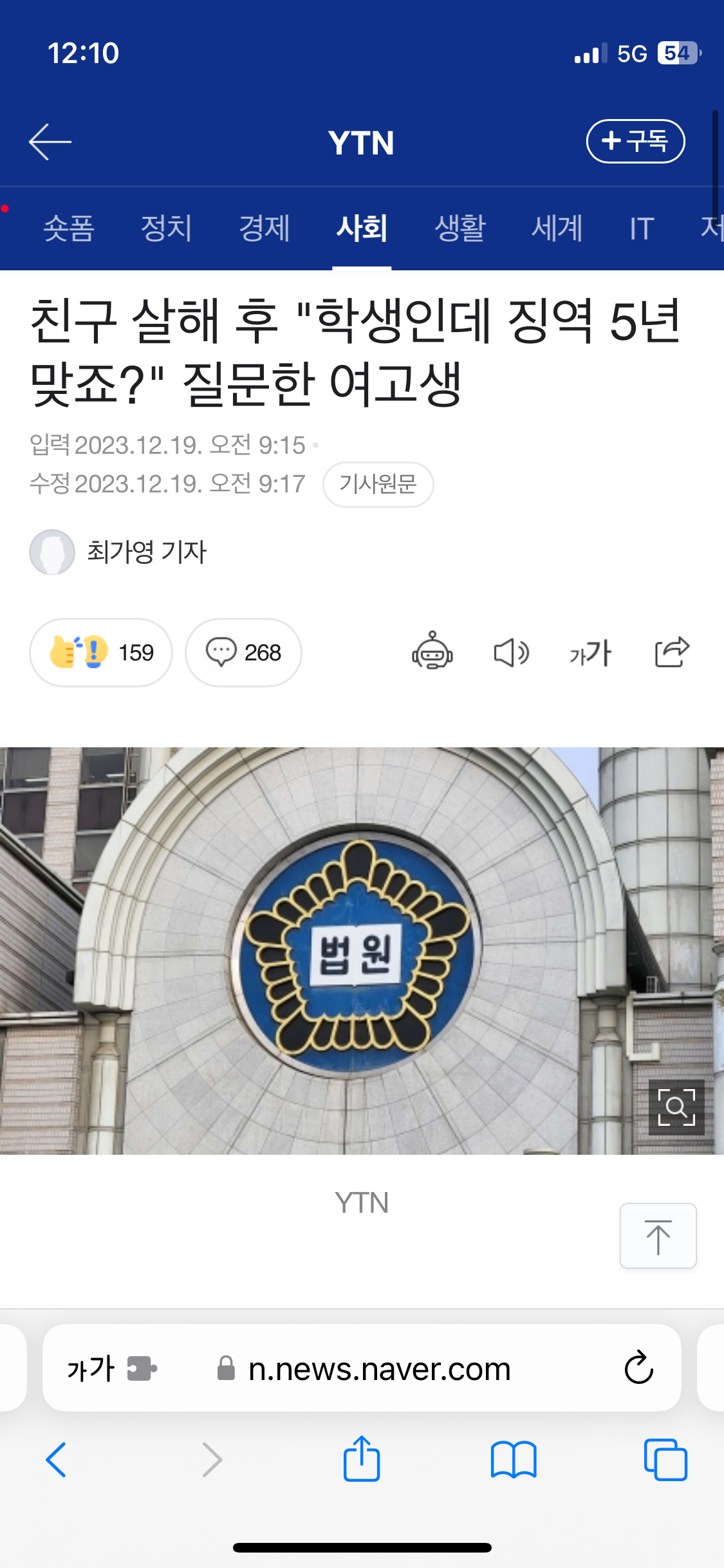 A ¾çÀº ¹üÇà Á÷ÈÄ 119¿¡ ½Å°íÇϸ鼭 "°íµîÇлýÀÌ´Ï±î »ìÀÎ ÇøÀÇ·Î ÇöÇà¹üÀ¸·Î üÆ÷µÇ¸é ¡¿ª 5³â ¹Þ´Â °Ô ¸Â´À³Ä"°í ¹°¾îº» °ÍÀ¸·Î µå·¯³µ´Ù.